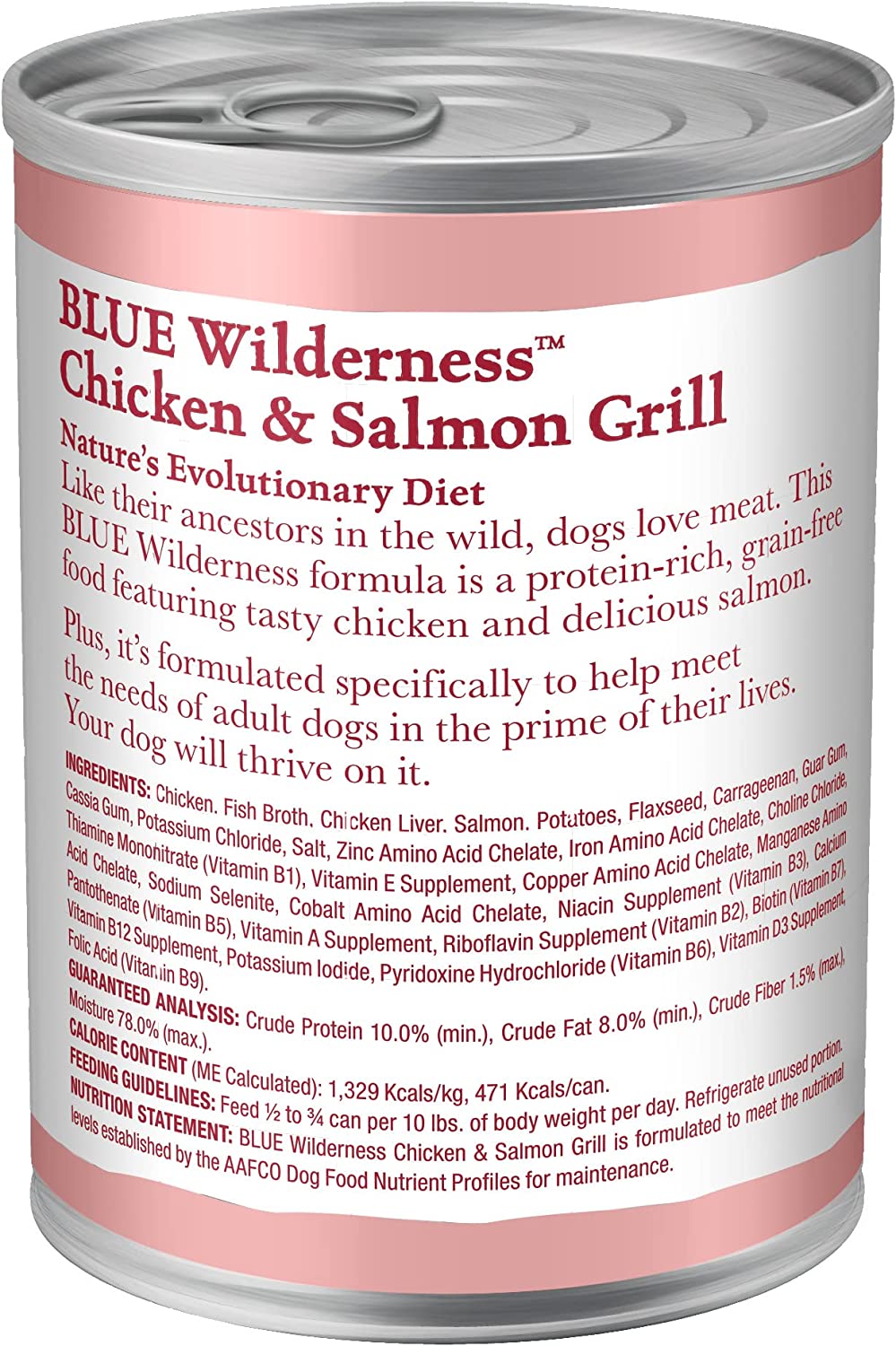 Blue Buffalo Blue Wilderness Salmon & Chicken Grill Wet Dog Food. 12.5 oz.. Case of 12
