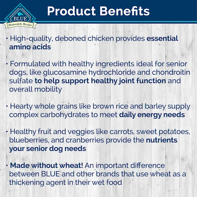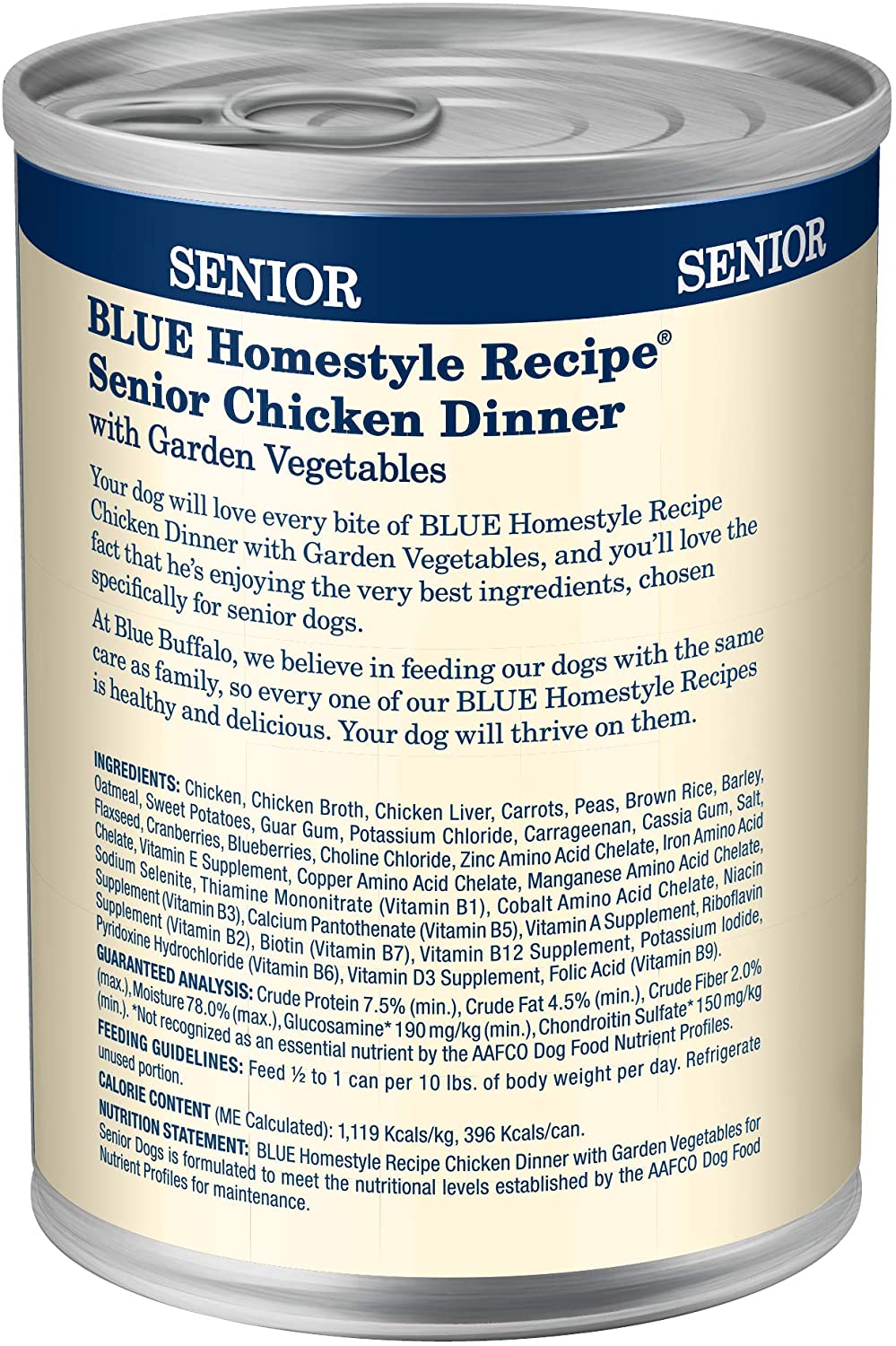 Blue Buffalo Homestyle Recipe Natural Senior Wet Dog Food. Chicken 12.5-oz can (Pack of 12)