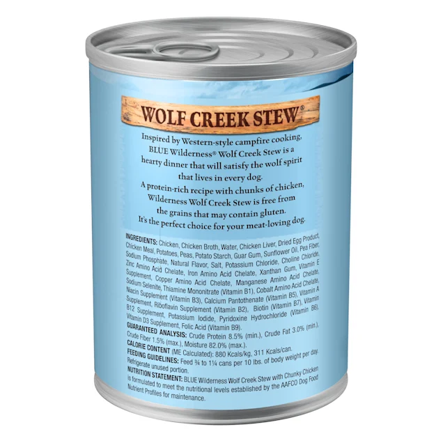 Blue Buffalo Blue Wilderness Wolf Creek Stew Chunky Chicken Stew Wet Dog Food. 12.5 oz.. Case of 12