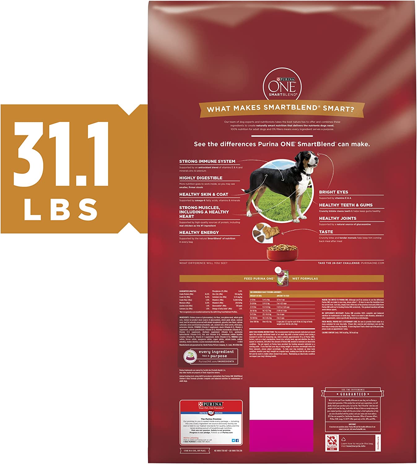 Purina ONE Natural Dry Dog Food SmartBlend Chicken & Rice Formula - 31.1 lb. Bag