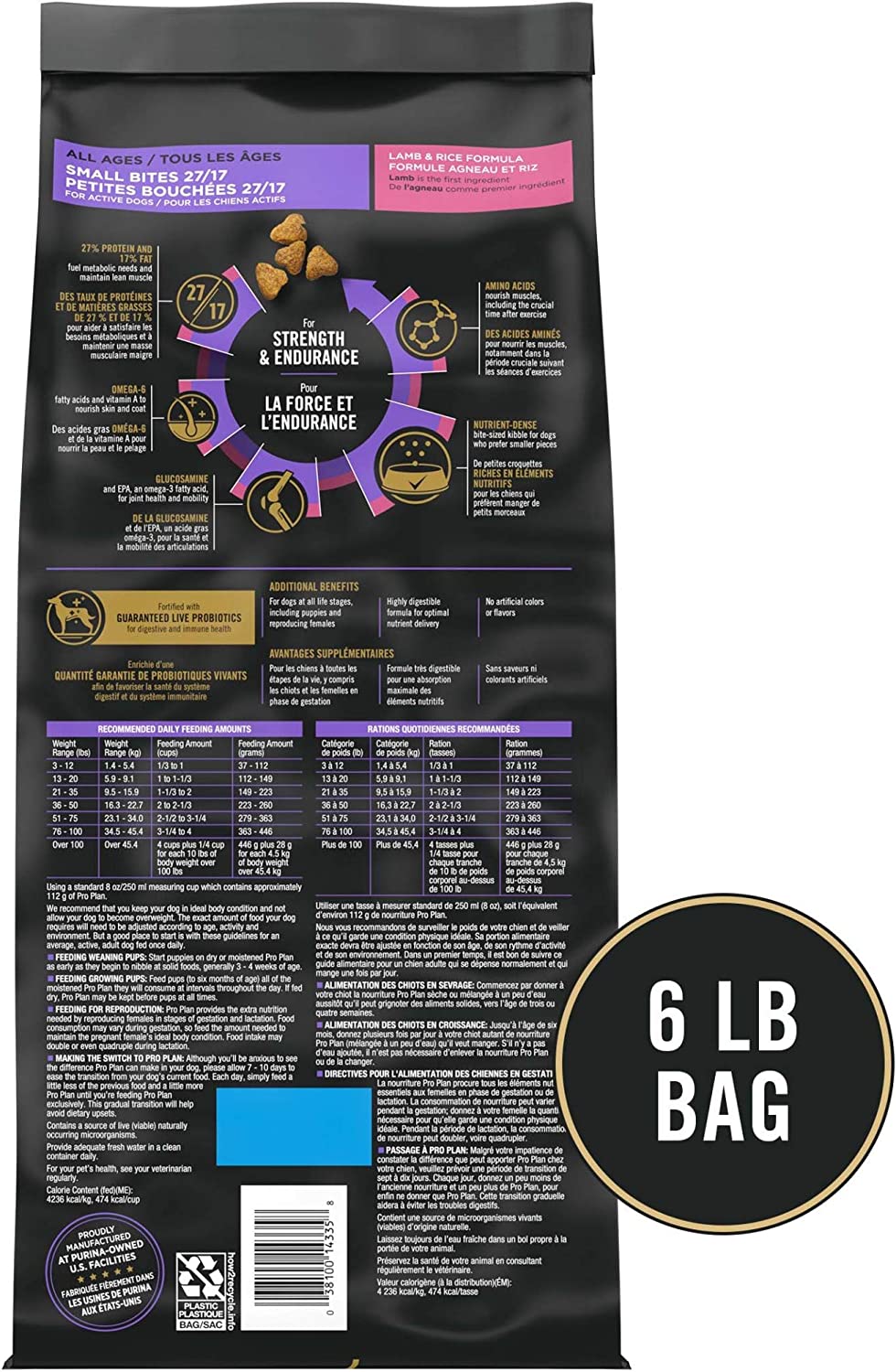 Purina Pro Plan High Protein Small Bites Dog Food. SPORT 27/17 Lamb & Rice Formula - 6 lb. Bag