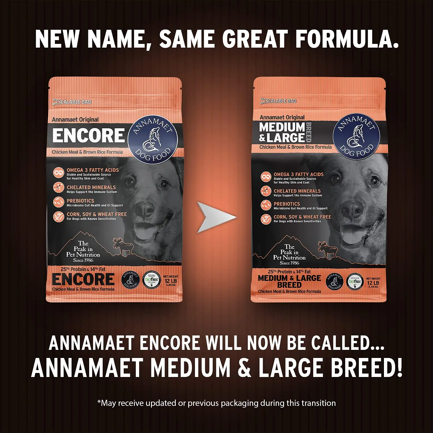 Annamaet Original Medium and Large Breed Formula Dry Dog Food. 25% Protein (Chicken & Brown Rice) - 5 lb. Bag