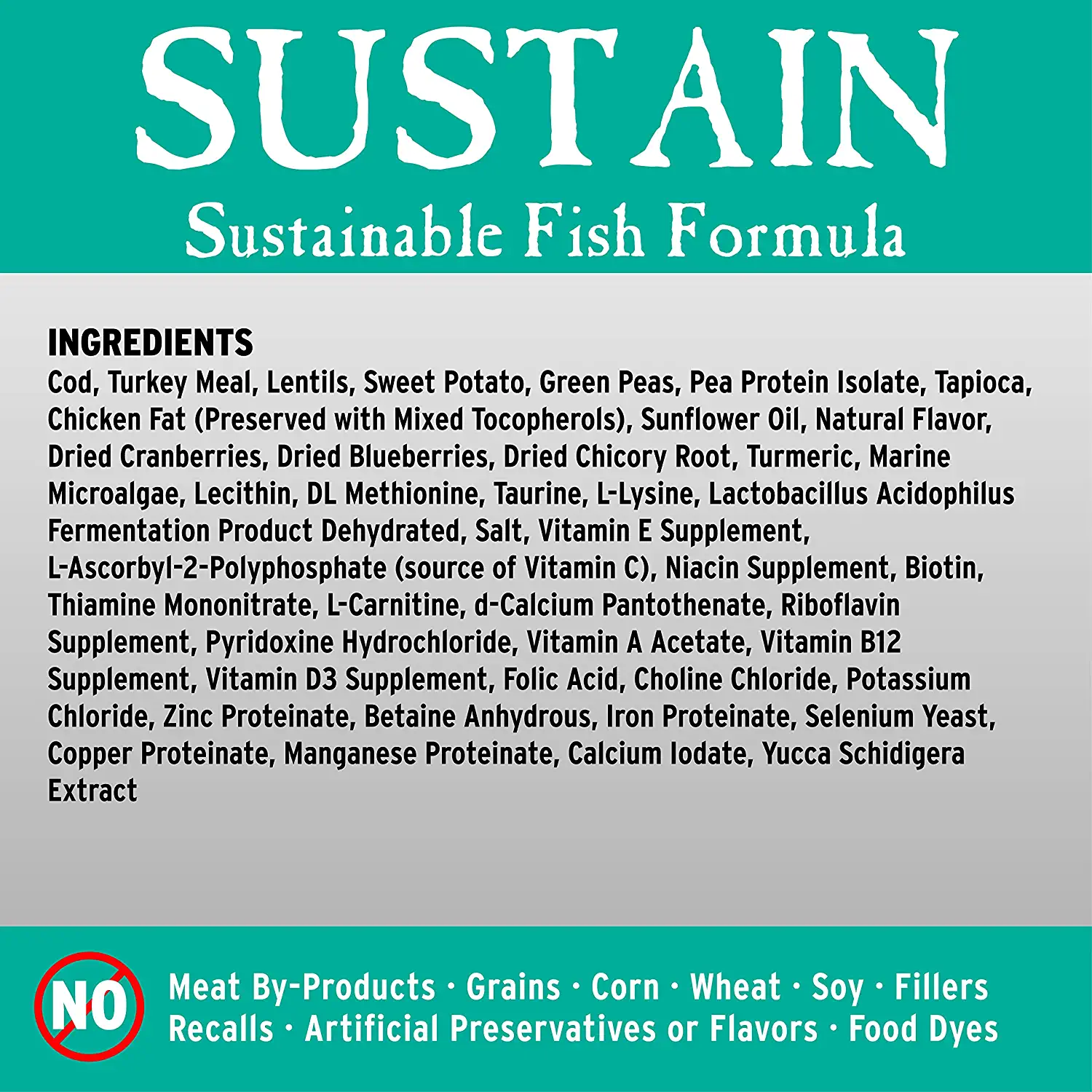 Annamaet Grain-Free Sustain Formula Dry Dog Food (Line-Caught Cod & Free-Range Turkey) 25-lb Bag