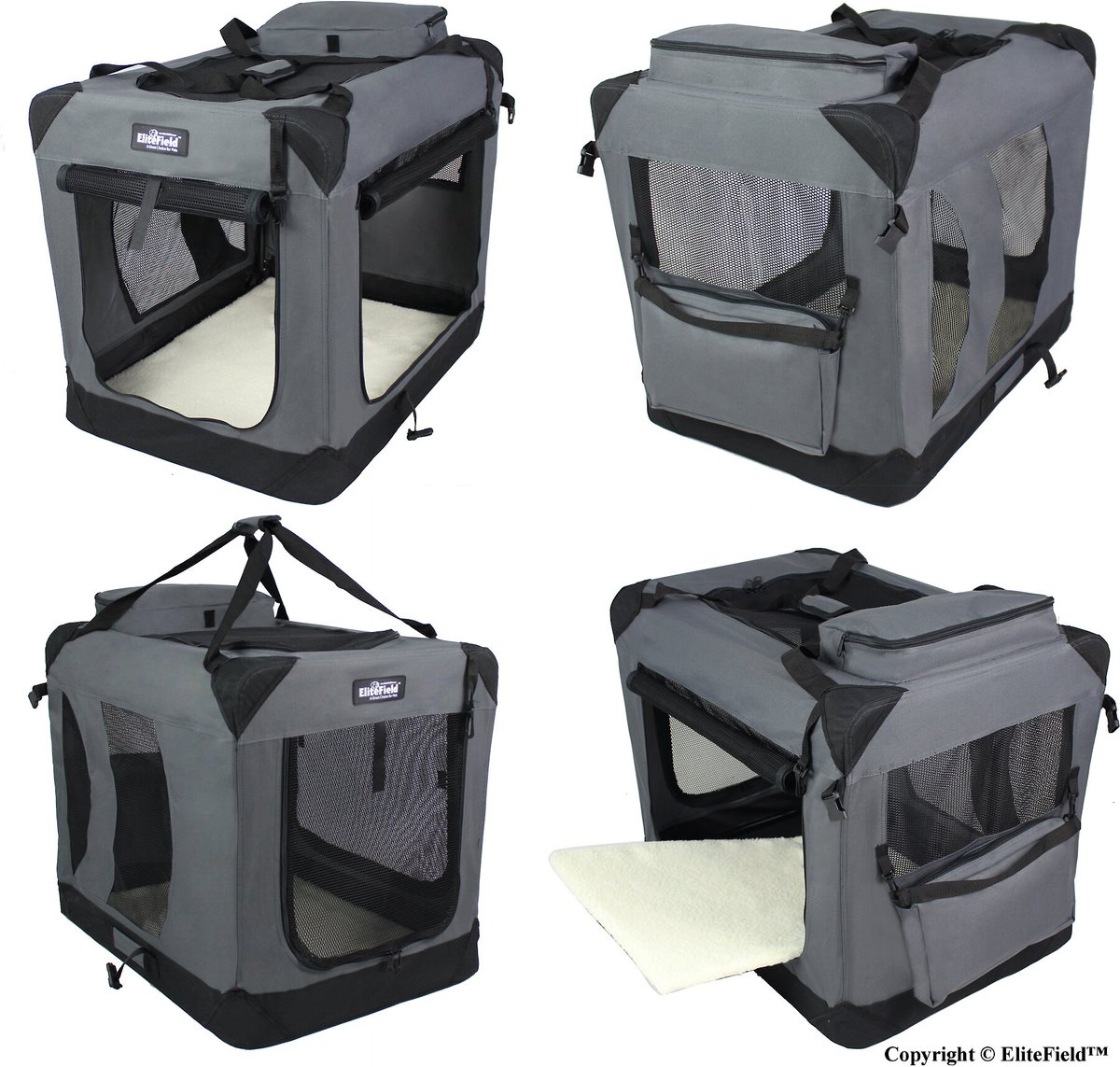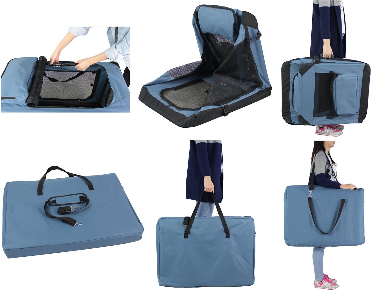 EliteField 3-Door Collapsible Soft-Sided Dog Crate (Blue Gray)