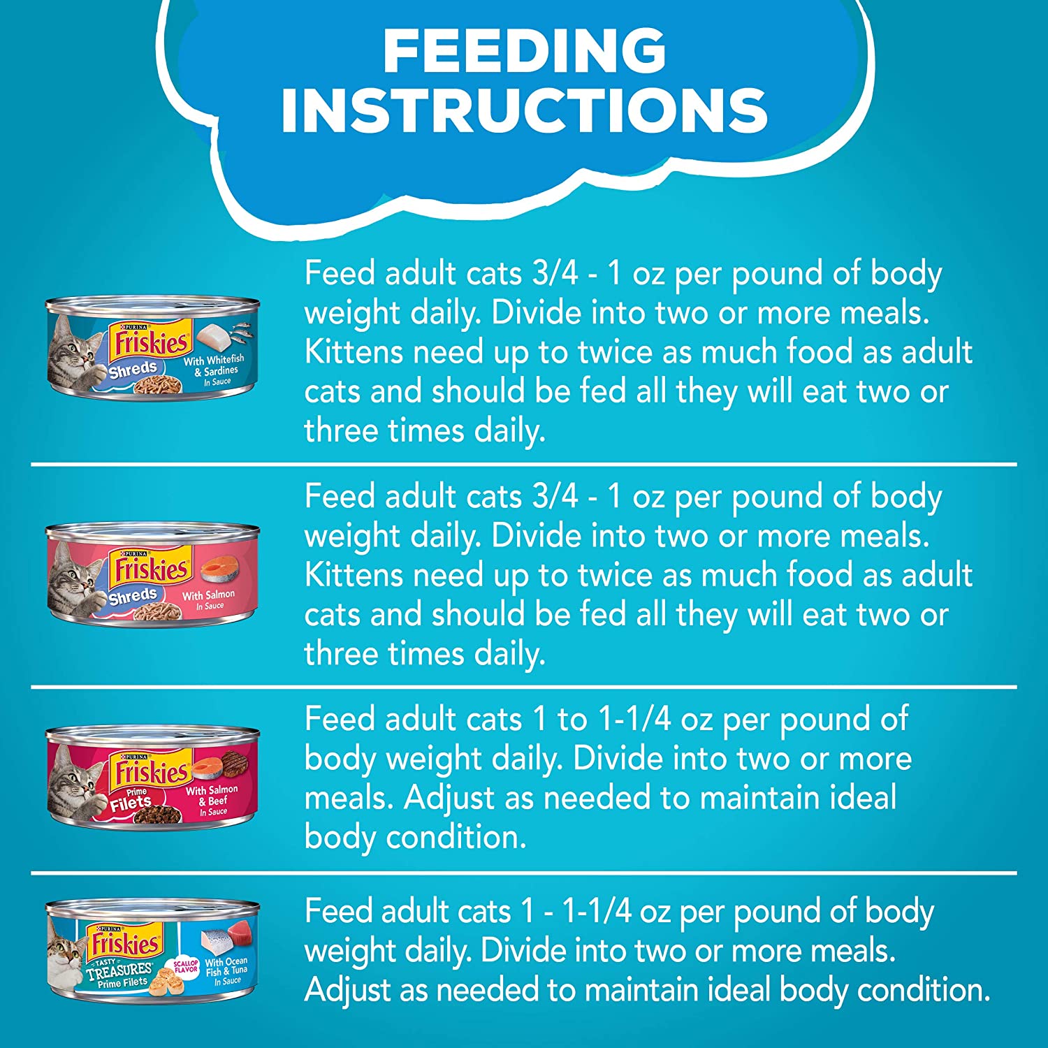 Purina Friskies Wet Cat Food Variety Pack Fish-A-Licious Shreds Prime Filets and Tasty Treasures - (32) 5.5 oz. Cans