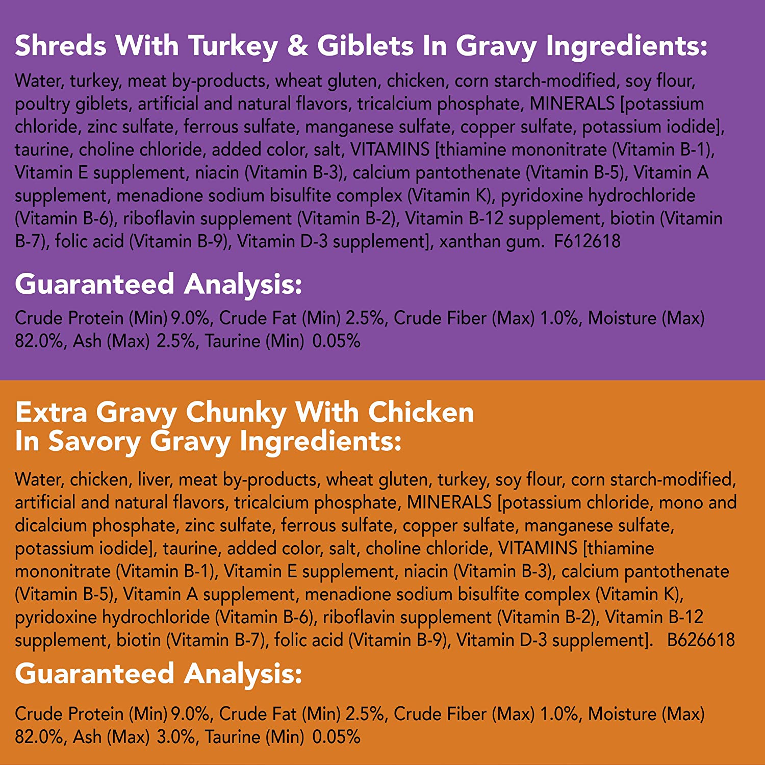 Purina Friskies Gravy Wet Cat Food Variety Pack TurChicken Extra Gravy Chunky Meaty Bits and Shreds - (40) 5.5 oz. Cans