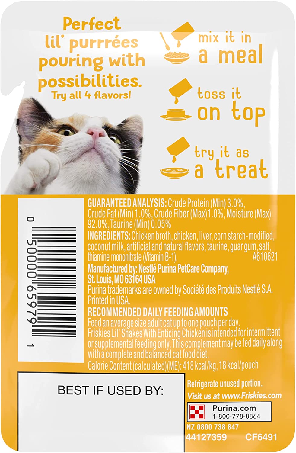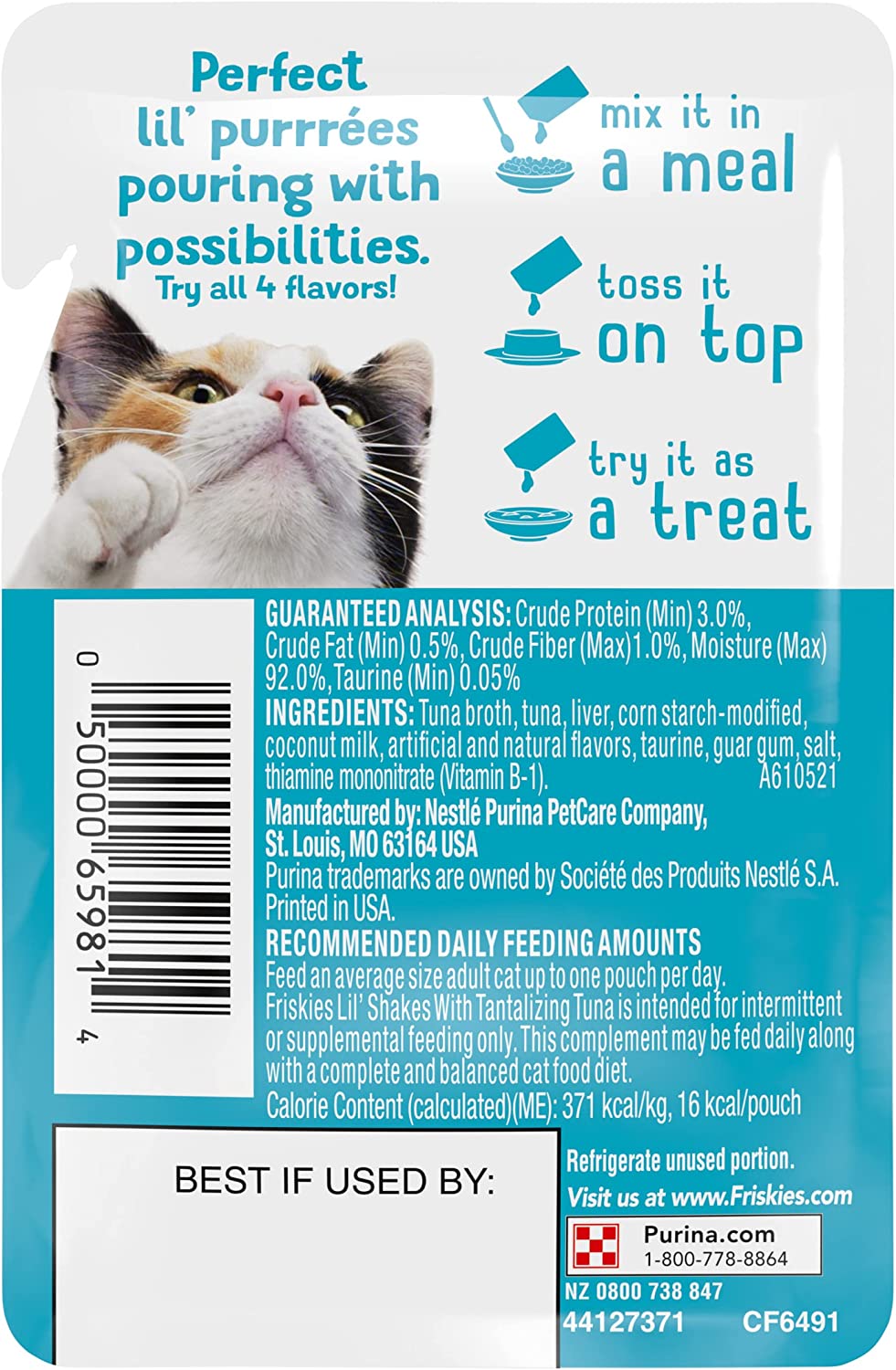 Purina Friskies Wet Pureed Cat Food Topper Lil- Shakes with Tantalizing Tuna - (16) 1.55 oz. Pouches