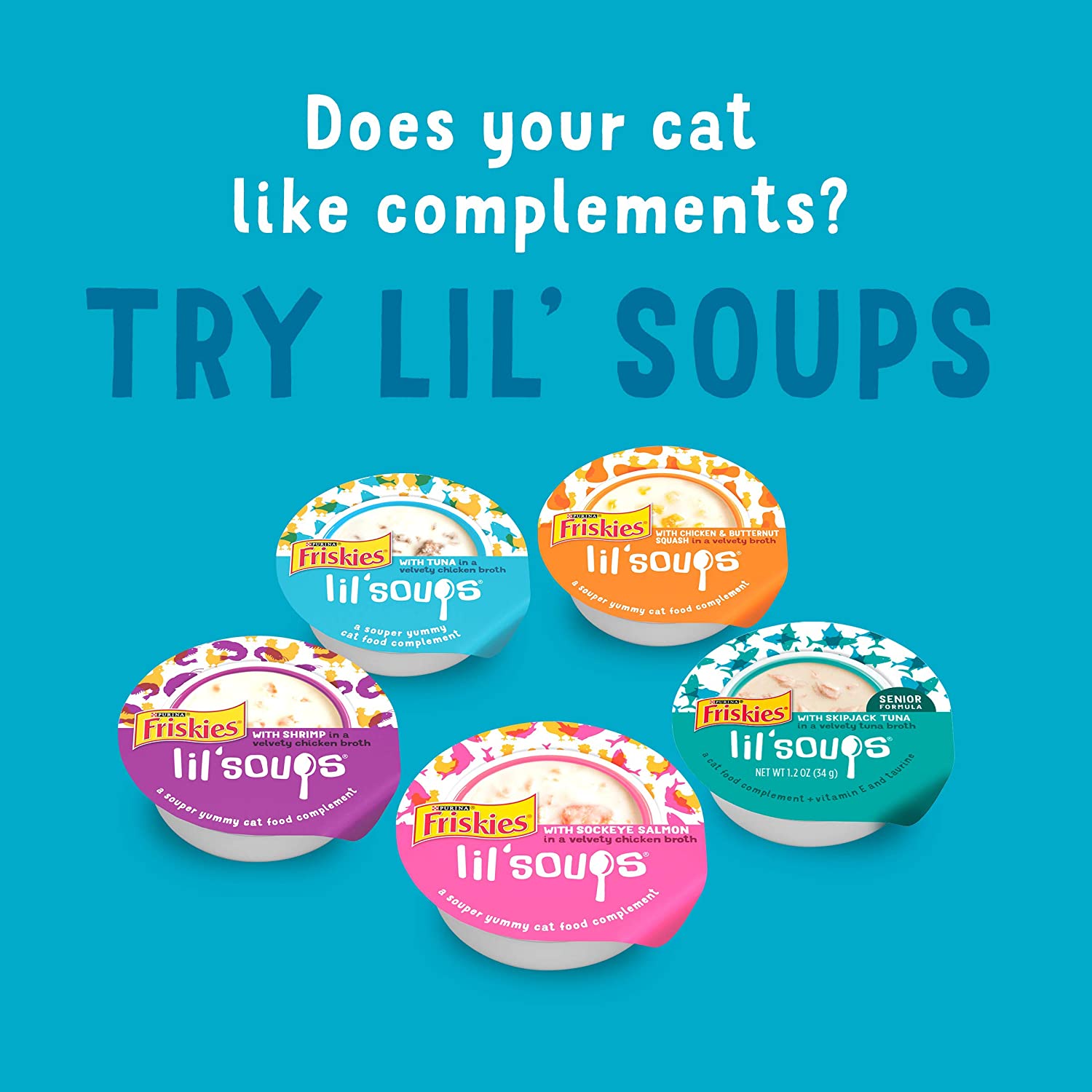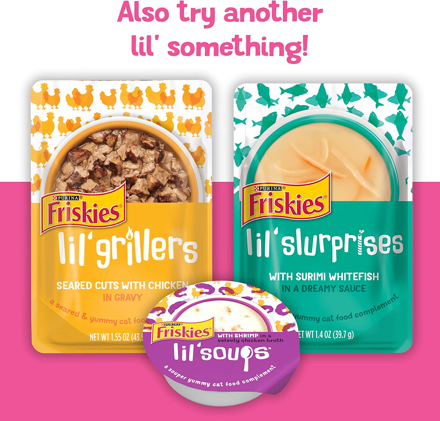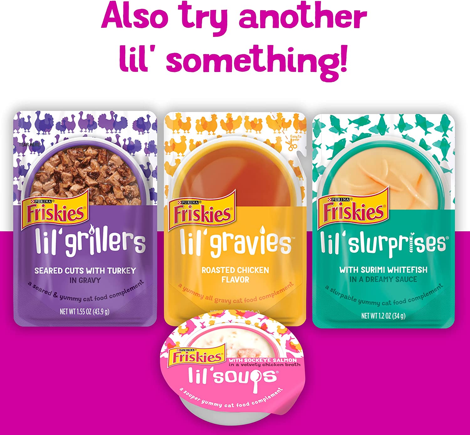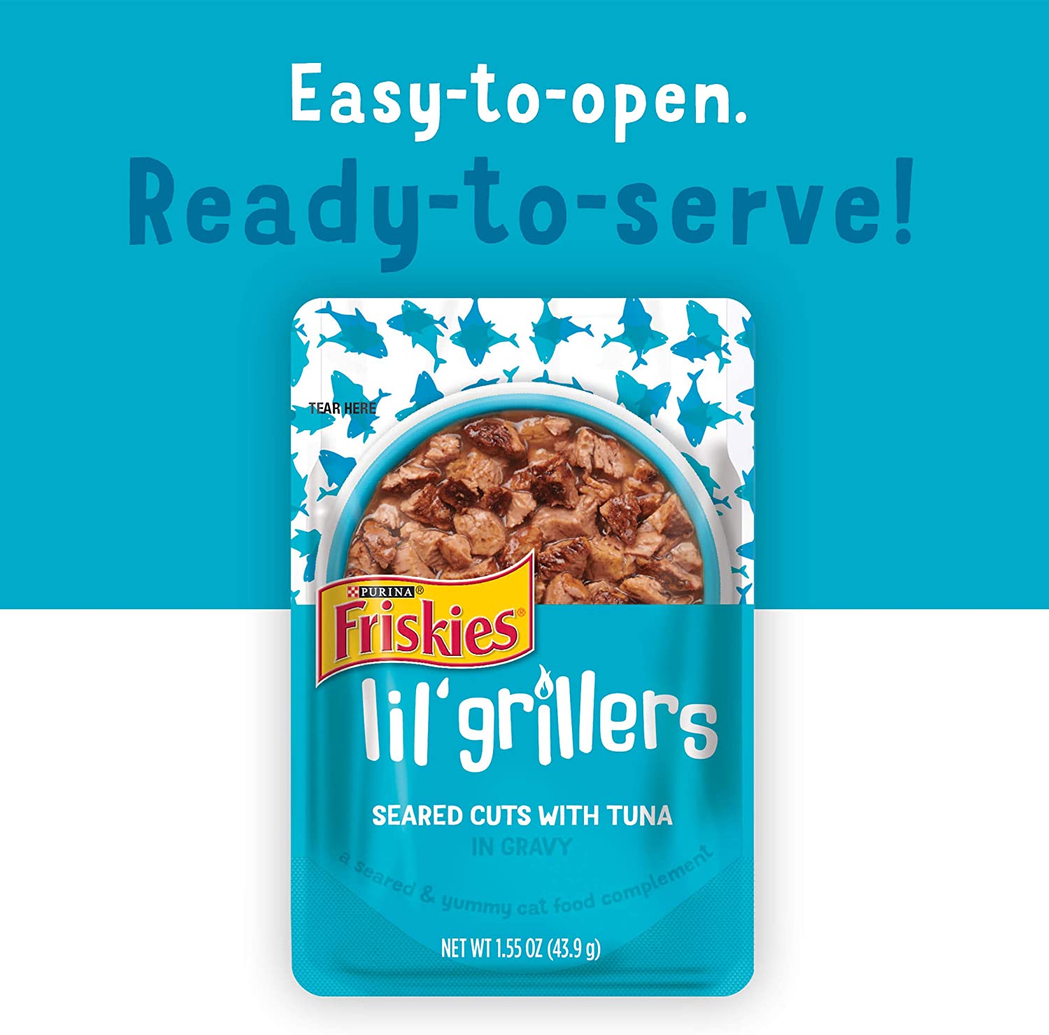 Purina Friskies Gravy Wet Cat Food Complement Variety Pack Lil- Grillers Chicken. Turkey. Ocean Fish & Tuna - (30) 1.55 oz. Pouches