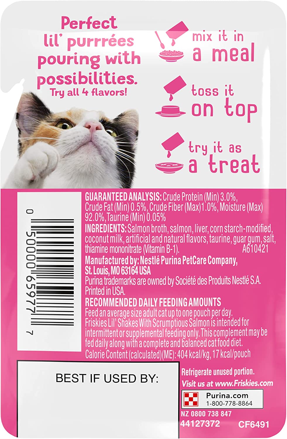 Purina Friskies Pureed Cat Food Topper Lil' Shakes with Scrumptious Salmon - (16) 1.55 oz. Pouches