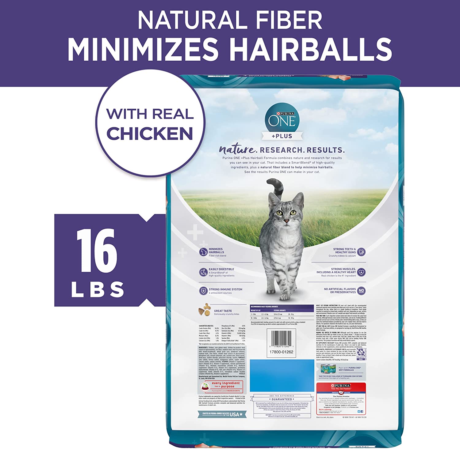 Purina ONE Hairball Control with Real Chicken High Fiber Natural Adult Dry Cat Food 16 Lb. Bag