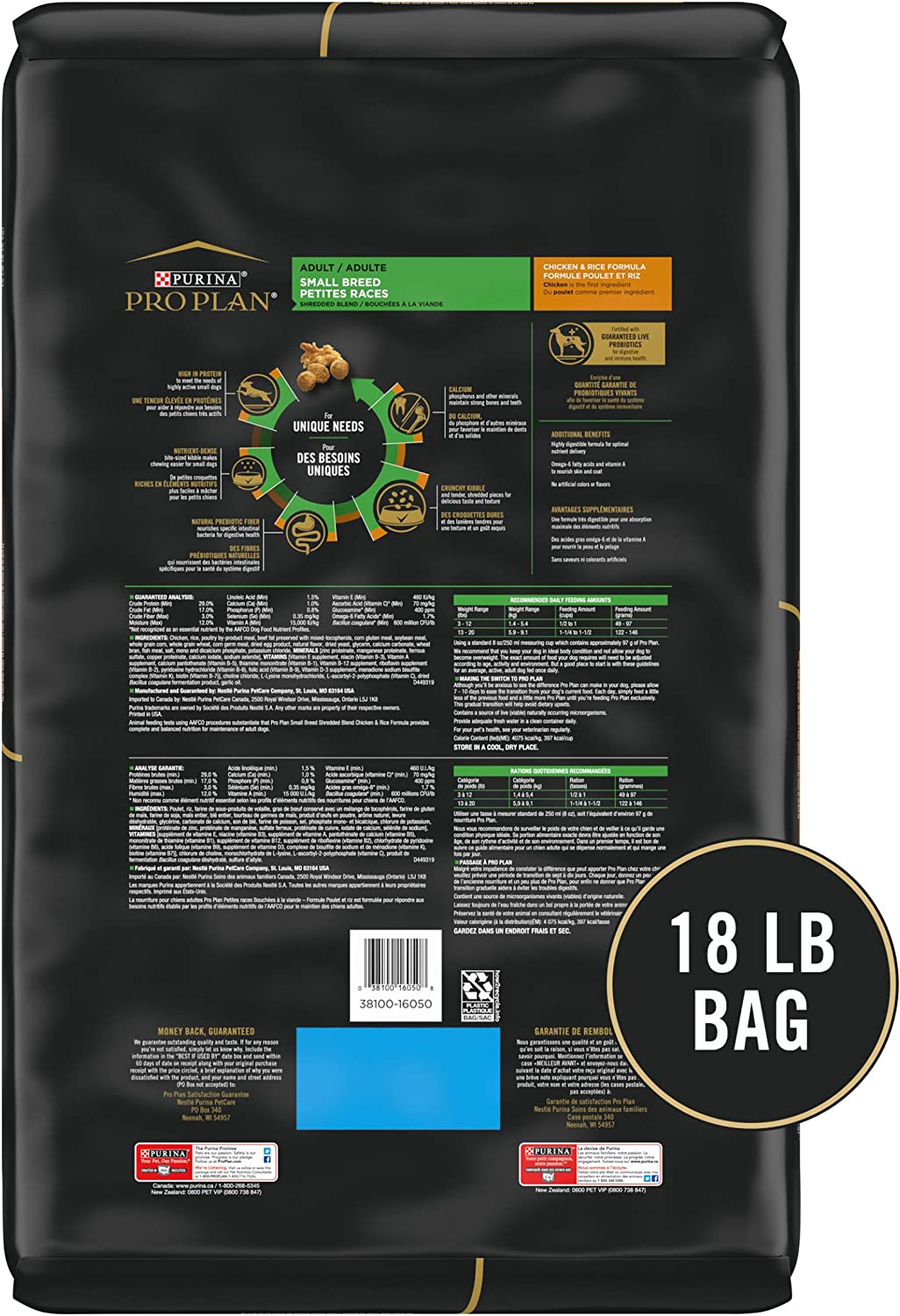 Purina Pro Plan Shredded Blend Adult Small Breed Chicken & Rice Formula Dry Dog Food 18 lb. Bag