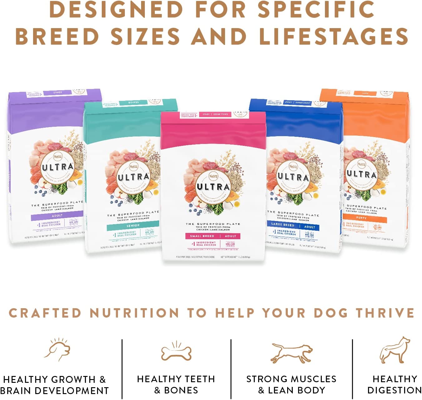 NUTRO ULTRA High Protein Natural Dry Dog Puppy Food with a Trio of Proteins from Chicken Lamb and Salmon 30 lb. Bag