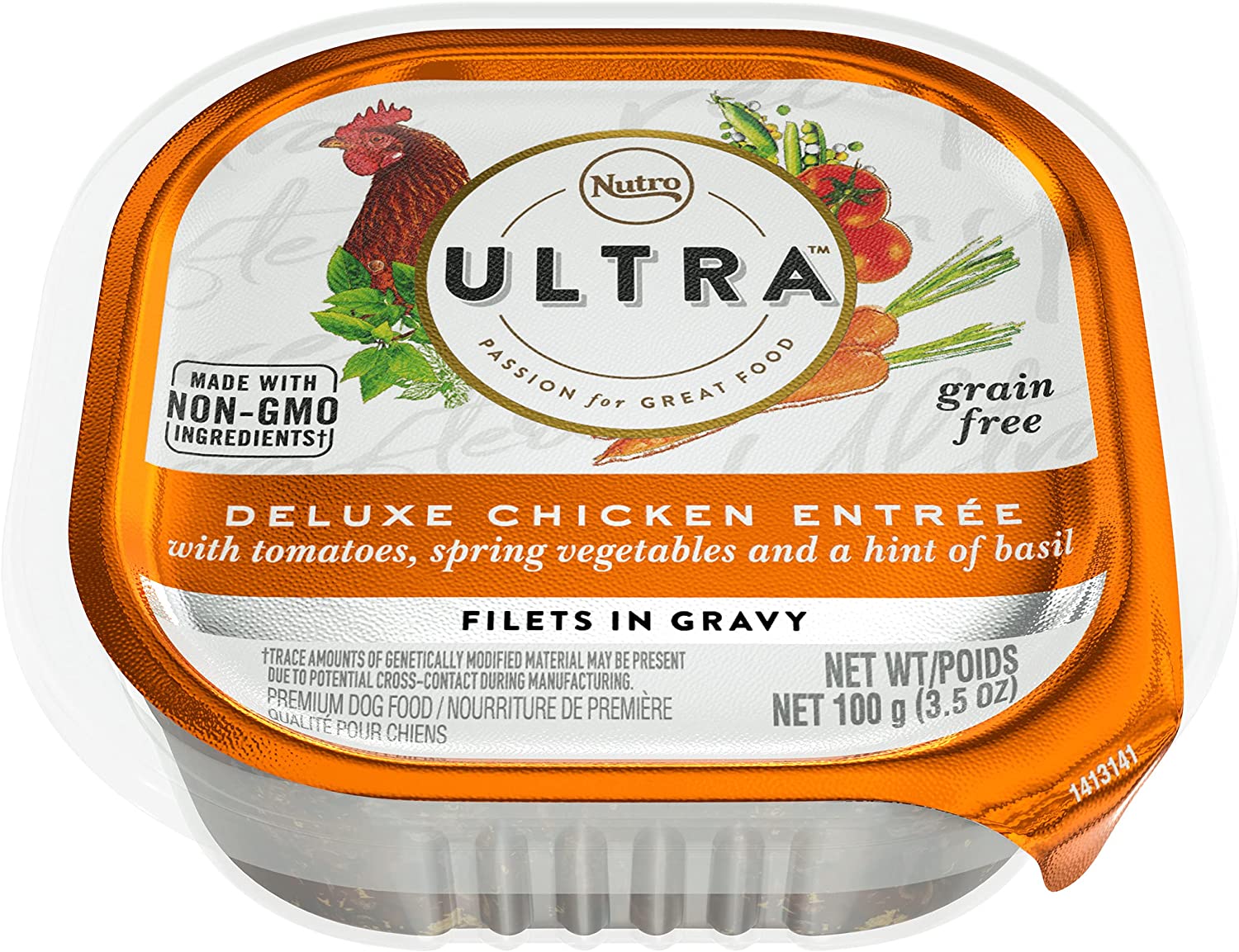 NUTRO ULTRA Grain Free Adult Wet Dog Food Filets in Gravy Deluxe Chicken Entrée With Tomatoes. Spring Vegetables. and a Hint of Basil 3.5 Ounce (Pack of 24)