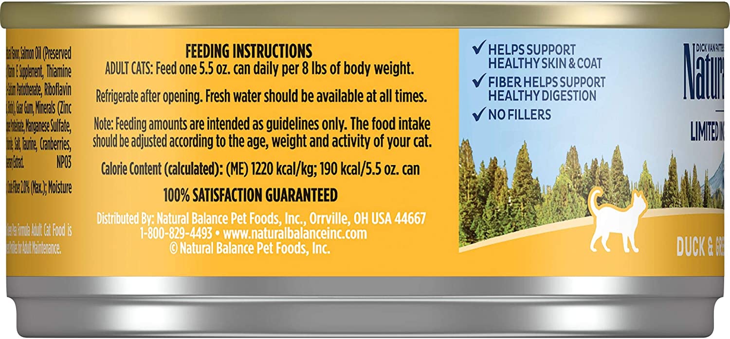Natural Balance L.I.D. Limited Ingredient Diets Duck & Green Pea Formula Grain-Free Canned Cat Food 5.5-oz case of 24
