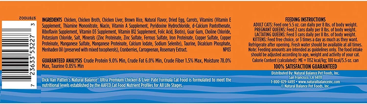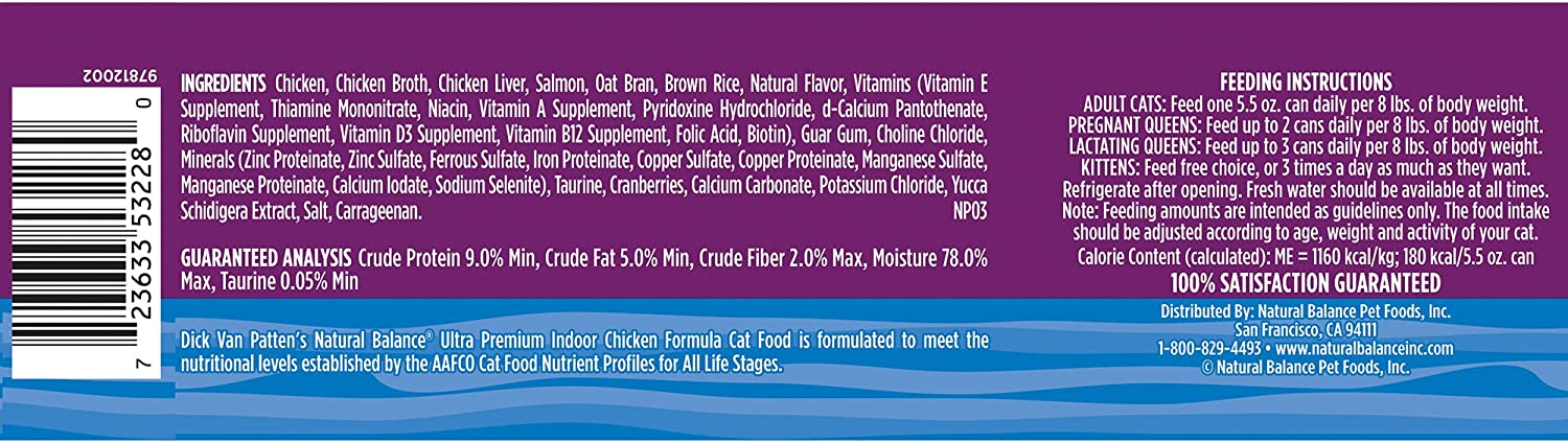 Natural Balance Ultra Premium Indoor Chicken Formula Canned Cat Food 5.5-oz case of 24