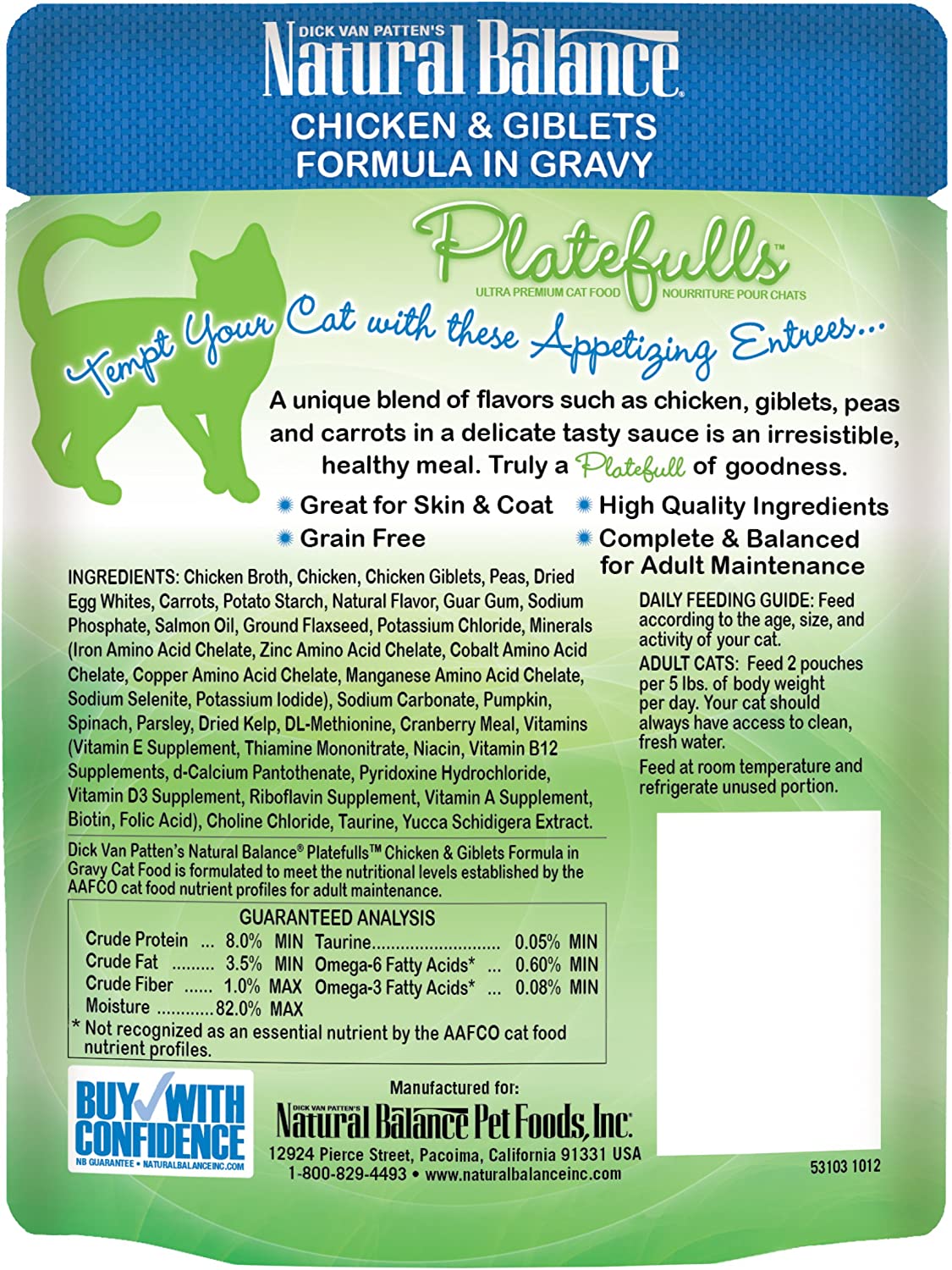 Natural Balance Platefulls Chicken & Giblets Formula in Gravy Grain-Free Cat Food Pouches 3-oz pouch case of 24