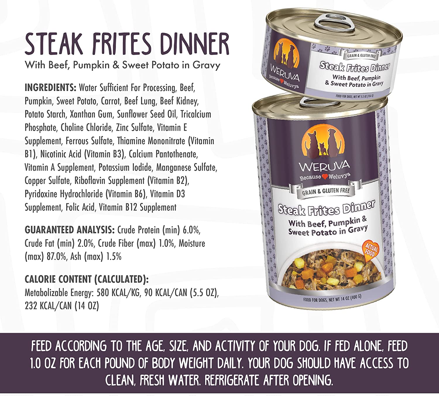 Weruva Steak Frites Dinner with Beef. Pumpkin & Sweet Potatoes in Gravy Grain-Free Canned Dog Food 5.5 Ounce (Pack of 24)