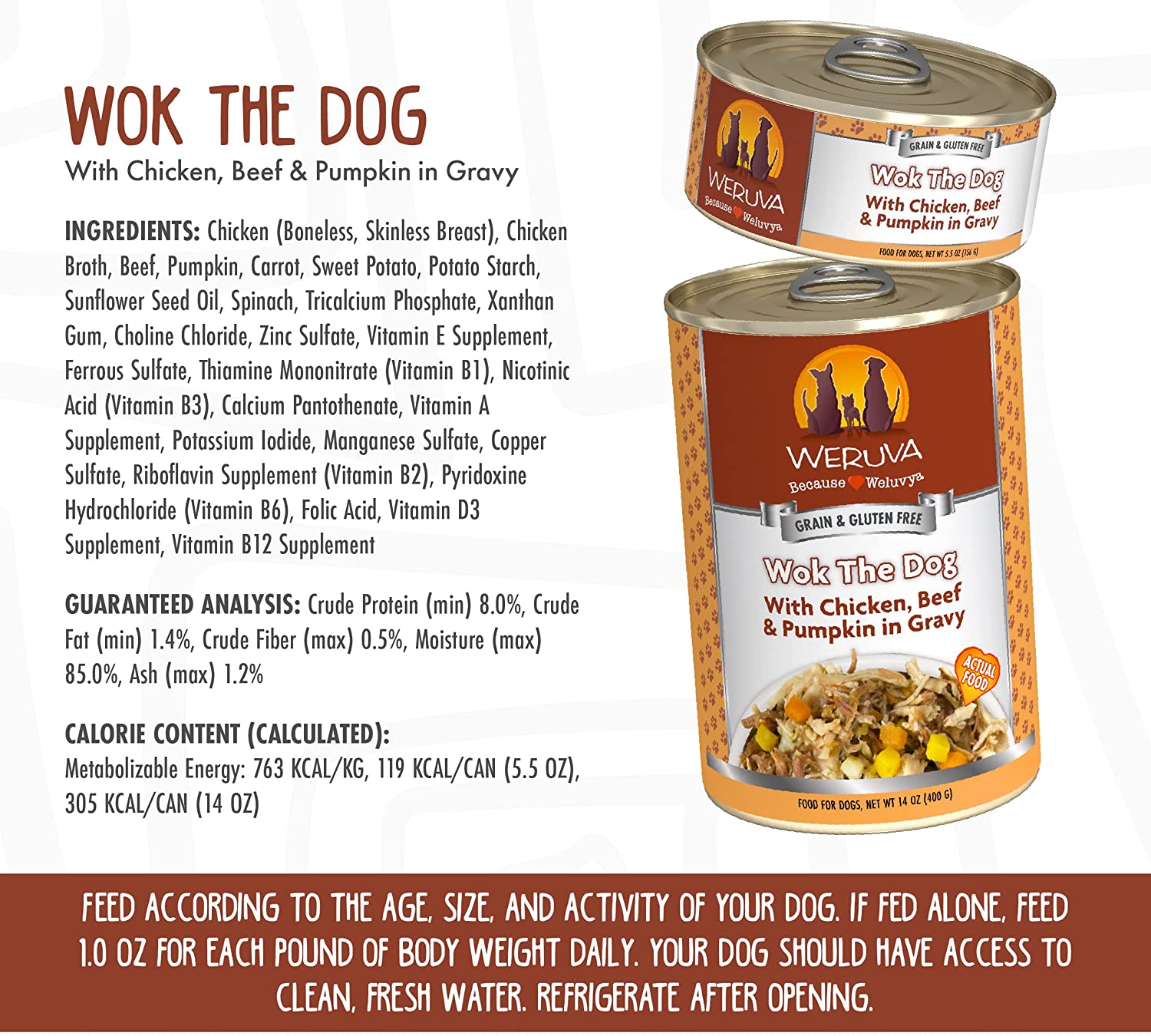 Weruva Wok the Dog with Chicken Beef & Pumpkin in Gravy Grain-Free Canned Dog Food 14 Ounce (Pack of 12)
