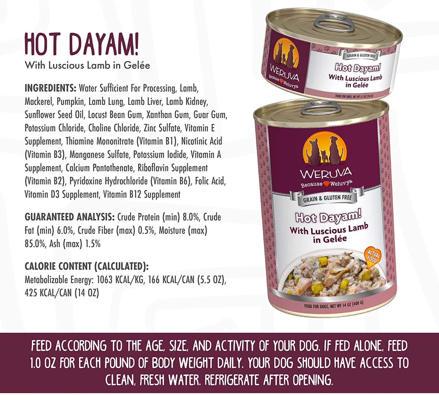 Weruva Hot Dayam! With Luscious Lamb in Gelee Grain-Free Canned Dog Food 14 Ounce (Pack of 12)
