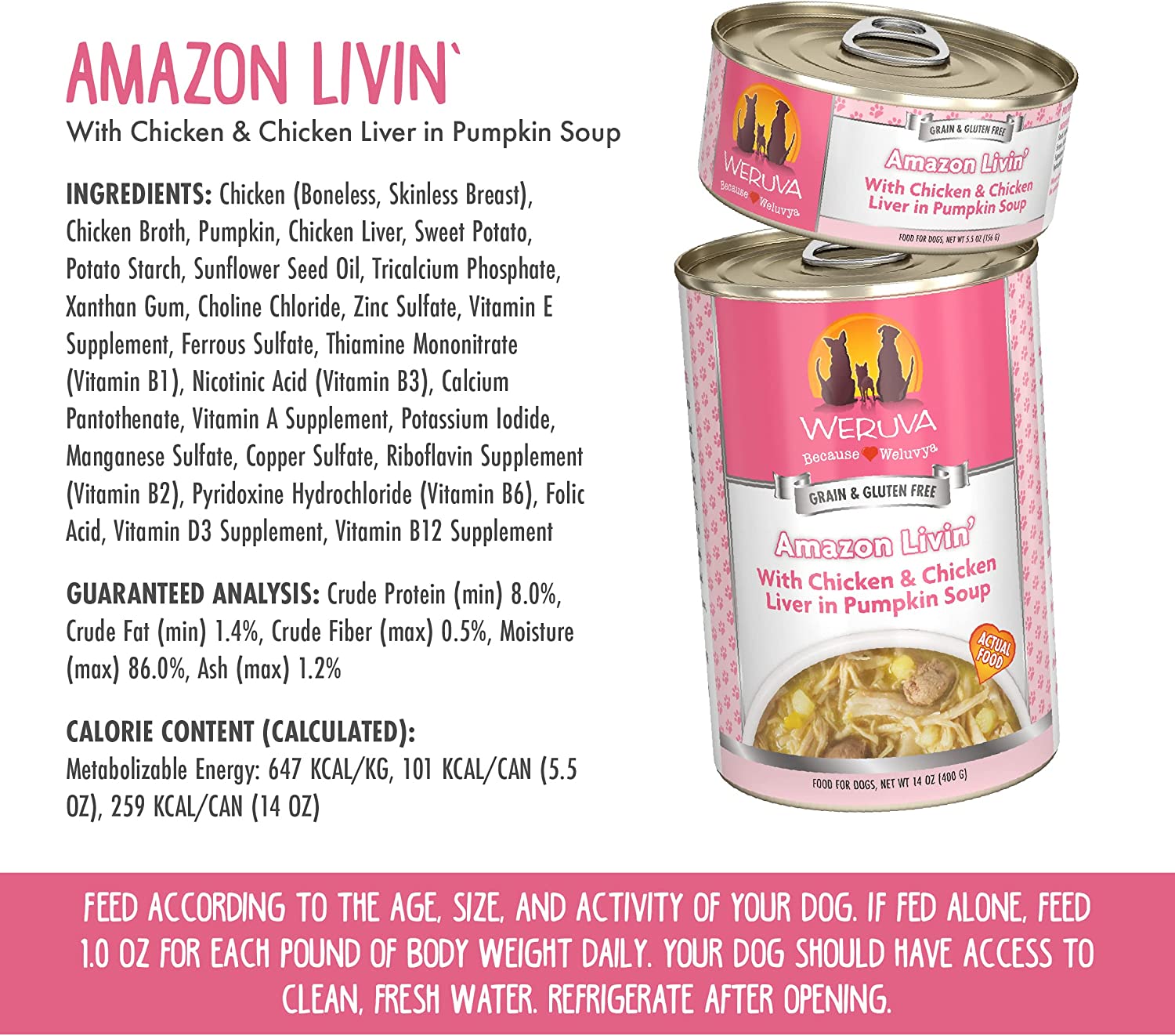 Weruva Amazon Livin- with Chicken & Chicken Liver in Pumpkin Soup Grain-Free Canned Dog Food 14oz Can (Pack of 12)