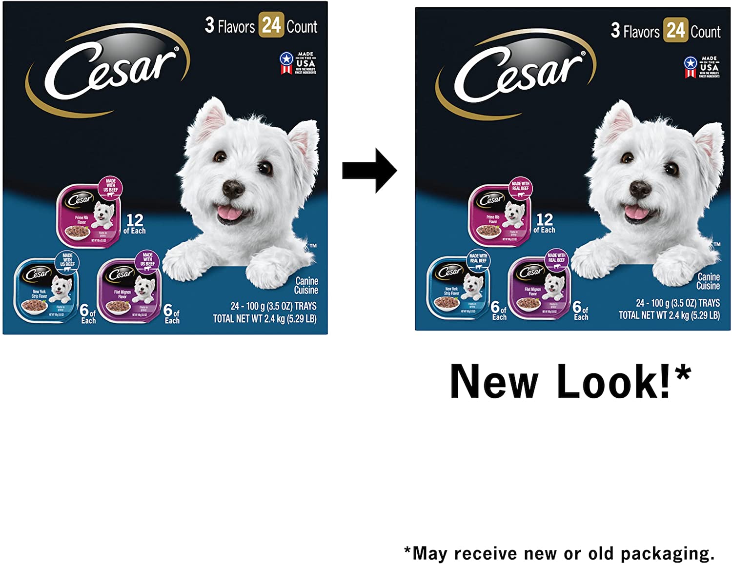 CESAR Adult Soft Wet Dog Food Filets in Gravy Variety Pack. Filet Mignon. New York Strip and Prime Rib Flavors. (24) 3.5 oz. Trays