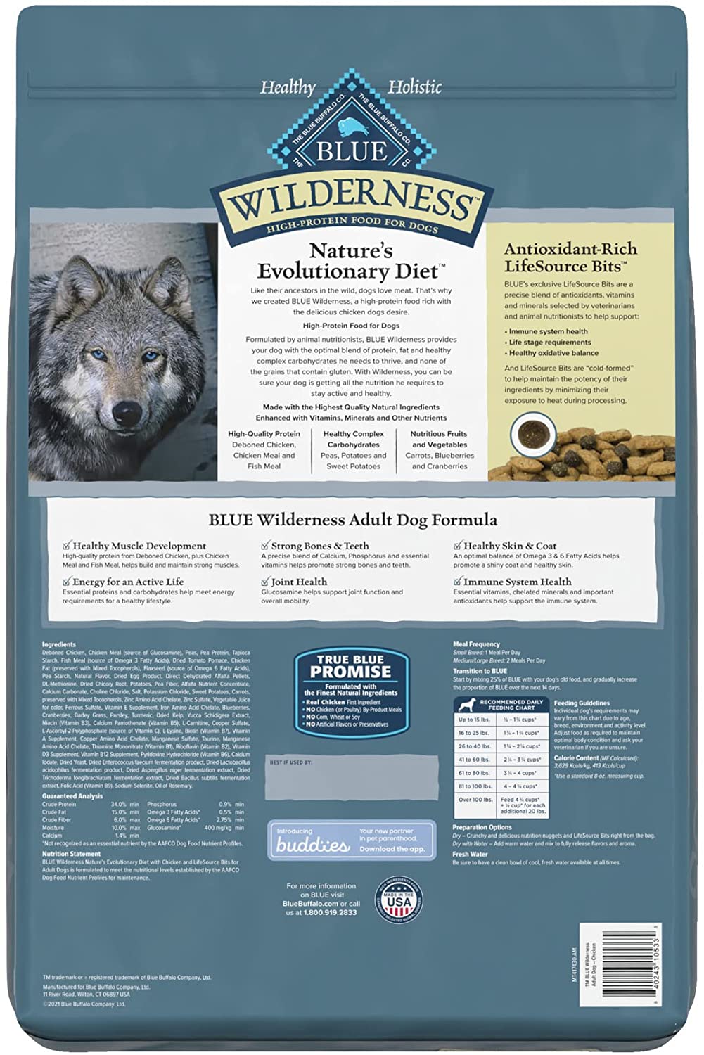 Blue Buffalo Wilderness High Protein. Natural Adult Dry Dog Food. Chicken 11-lb
