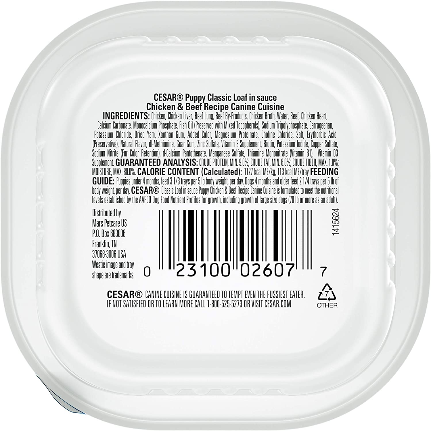 CESAR Puppy Soft Wet Dog Food Classic Loaf in sauce Chicken & Beef Recipe. 3.5 oz. Pack of 24 Easy Peel Trays