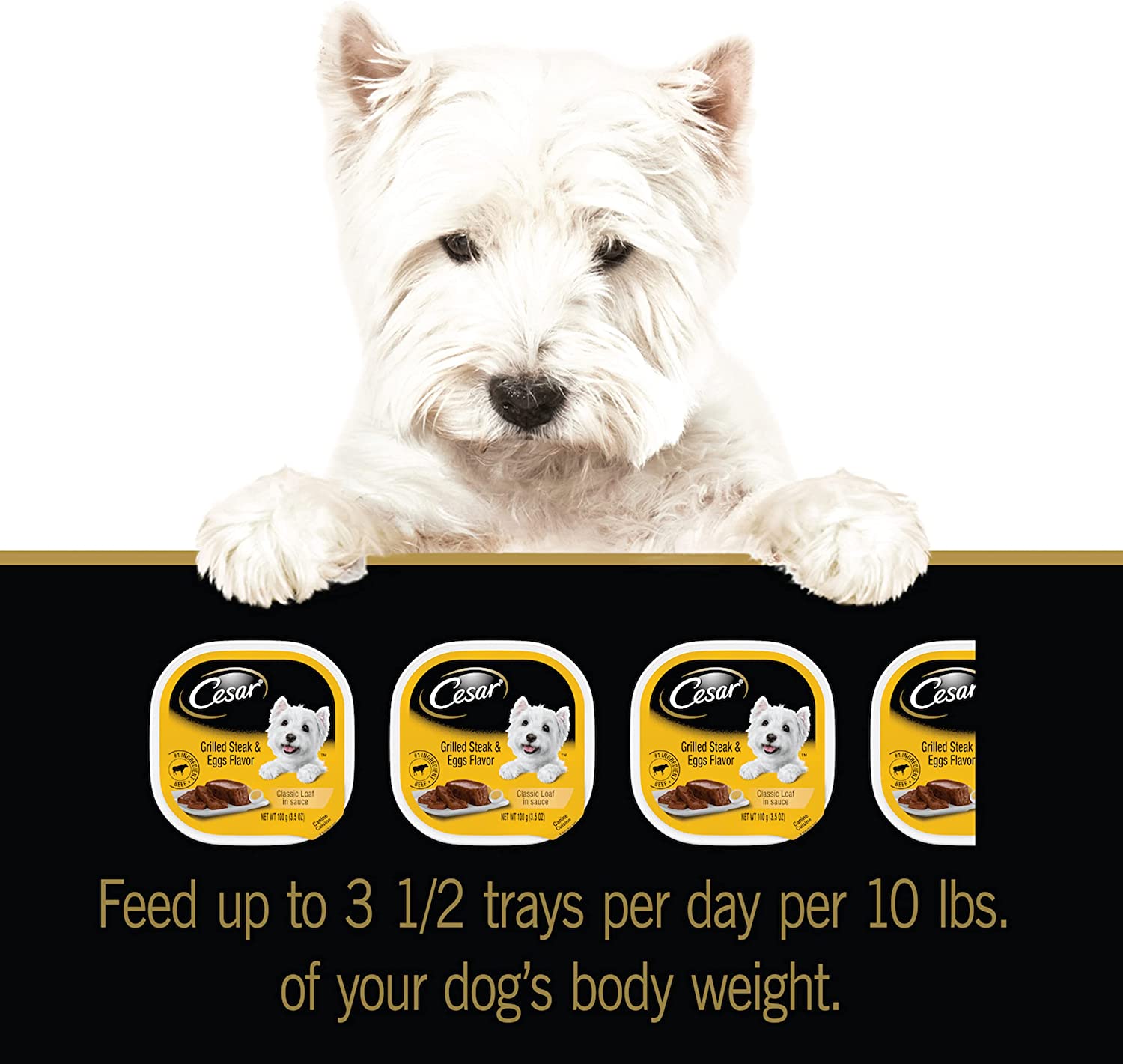 CESAR Soft Wet Dog Food Classic Loaf in Sauce Grilled Steak and Eggs Flavor. 3.5 oz. Easy Peel Trays Pack of 24