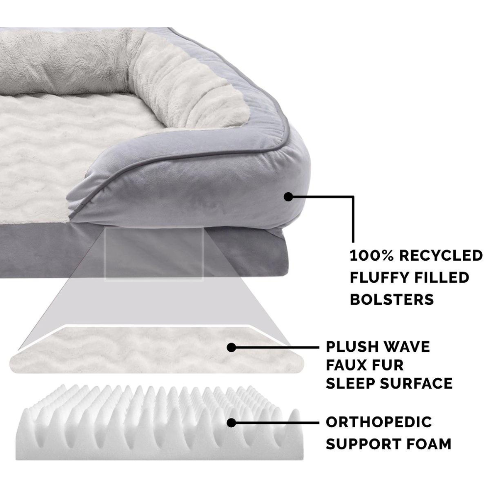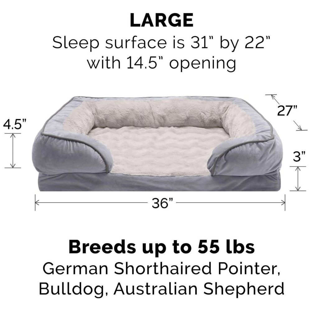 FurHaven Large Velvet Waves Perfect Comfort Orthopedic Sofa Cat & Dog Bed. Granite Gray