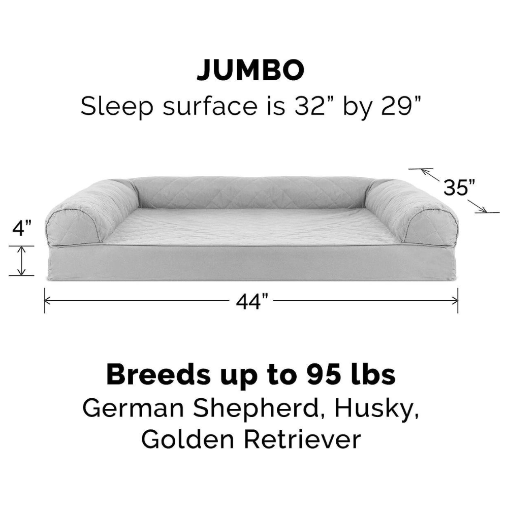 FurHaven Jumbo Quilted Orthopedic Sofa Cat & Dog Bed w/ Removable Cover. Silver Gray
