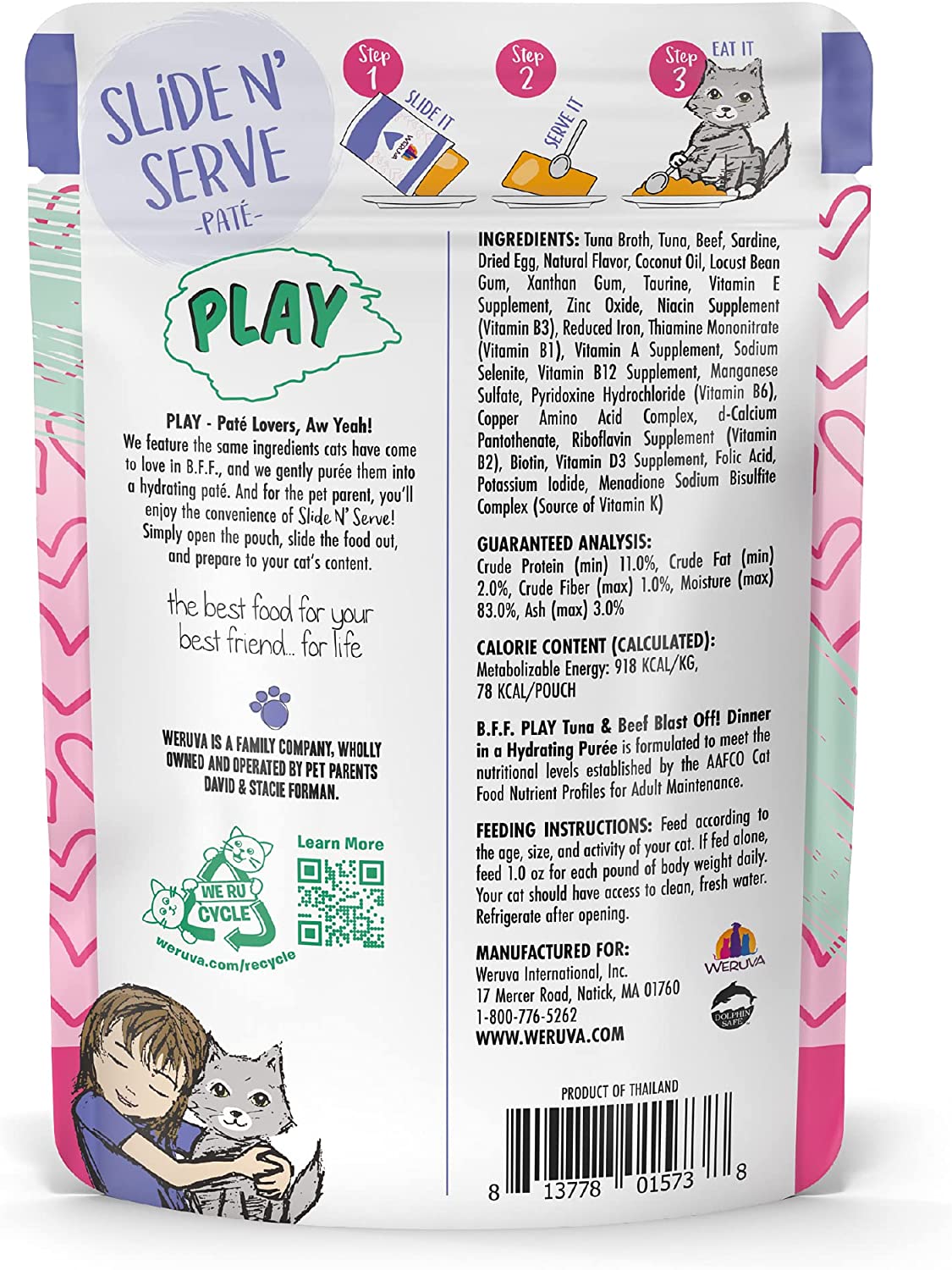 Weruva Wet Cat Food B.F.F. Play - Best Feline Friend Paté Lovers. Aw Yeah!. Beef & Tuna Ta Da! with Beef & Tuna. 3oz Pouch (Pack of 12)