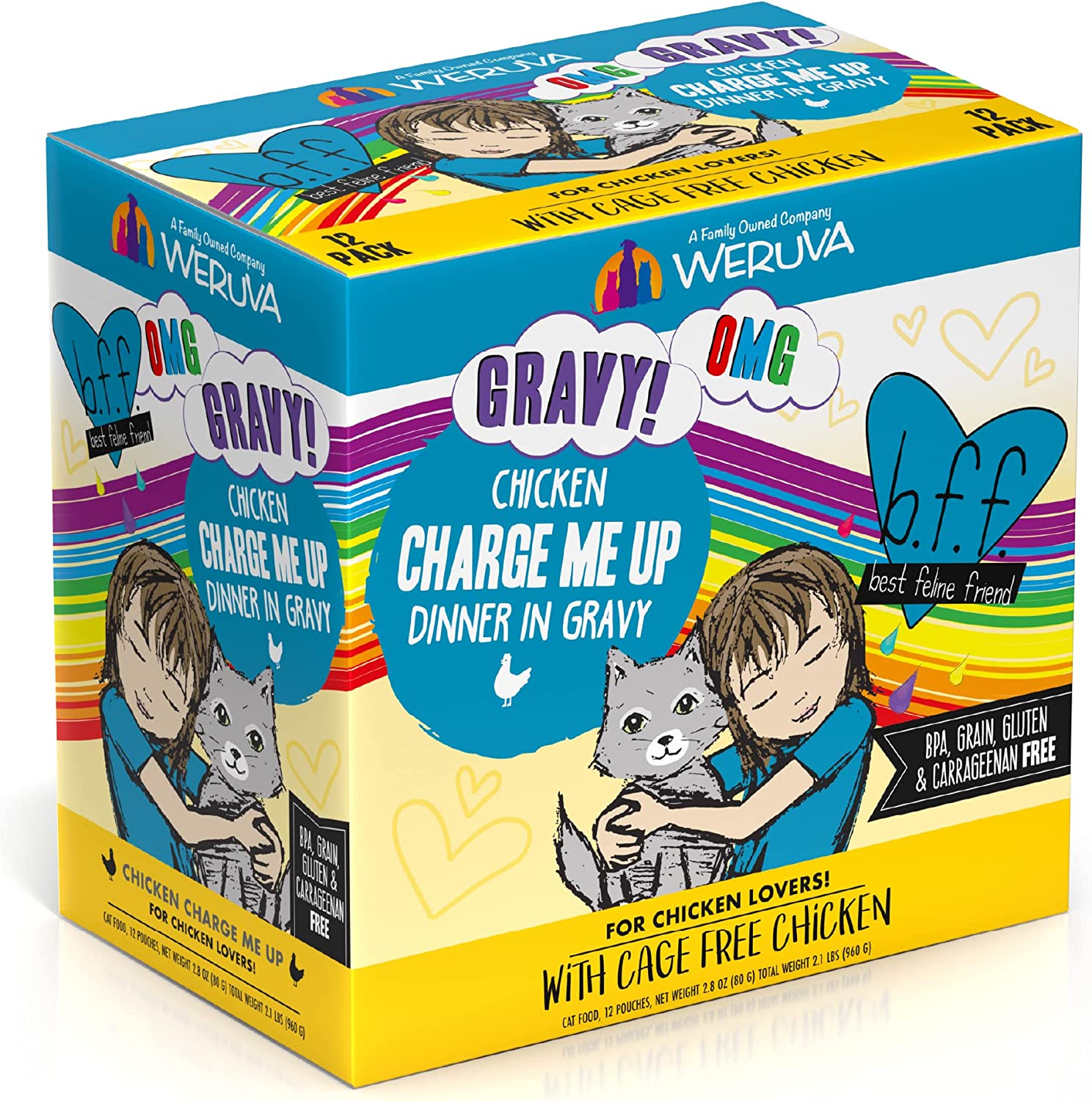 Weruva Wet Cat Food B.F.F. OMG - Best Feline Friend Oh My Gravy!. Chicken Charge Me Up with Chicken in Gravy. 2.8oz Pouch (Pack of 12)