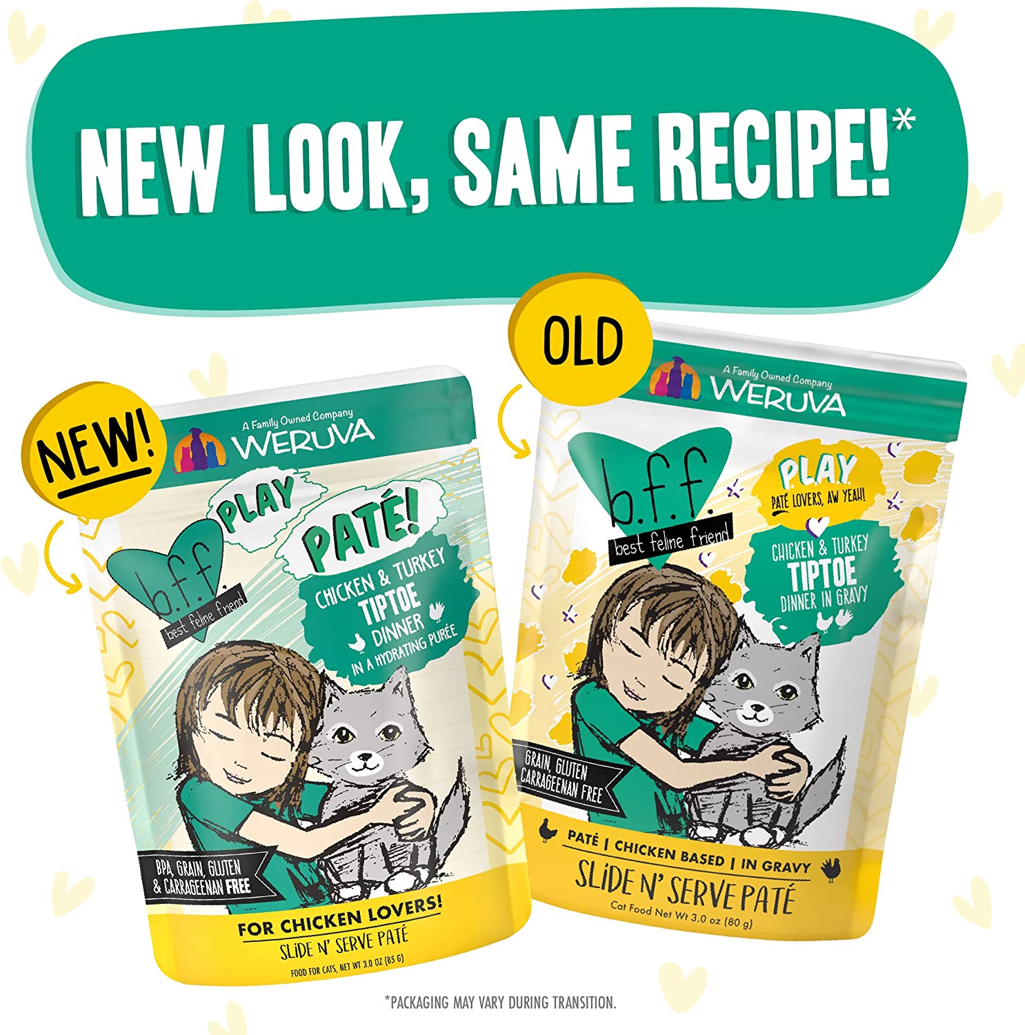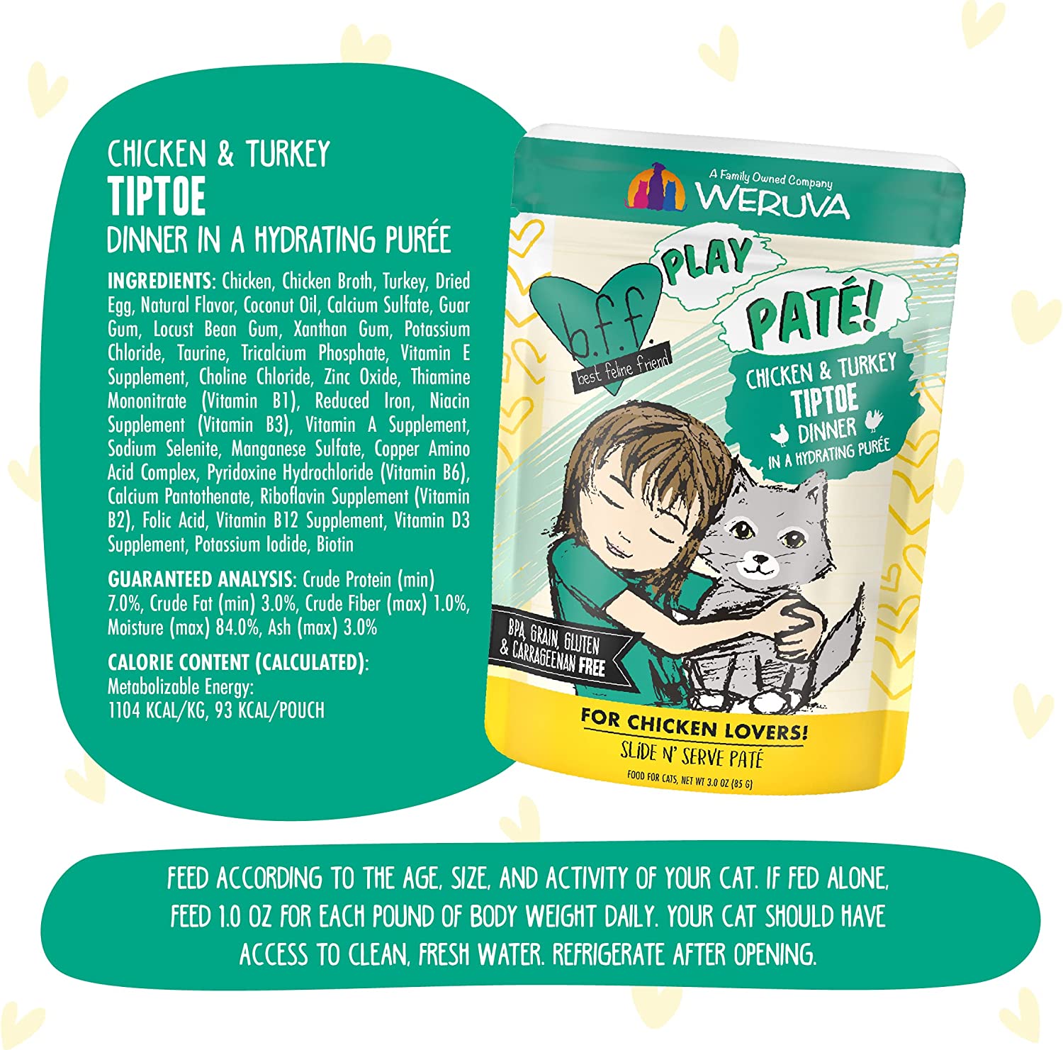 Weruva Wet Cat Food B.F.F. PLAY - Best Feline Friend Paté Lovers. Aw Yeah!. Chicken & Turkey Tiptoe with Chicken & Turkey. 3oz Pouch (Pack of 12)