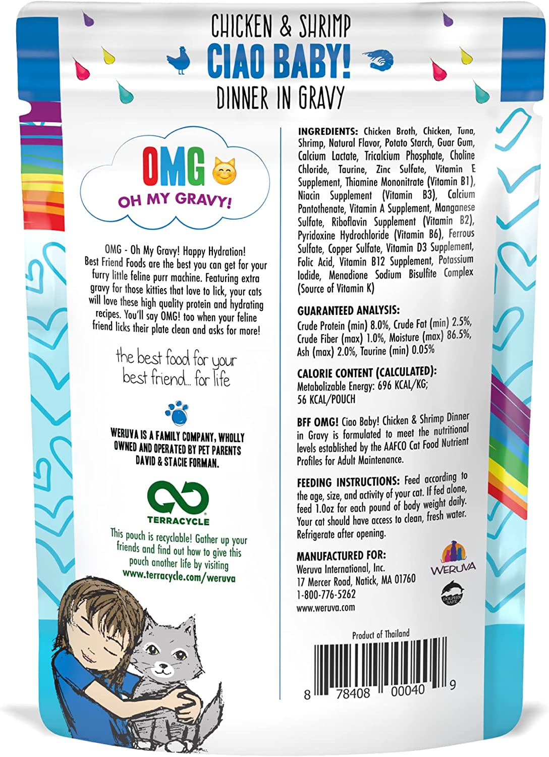 Weruva B.F.F. OMG - Best Feline Friend Oh My Gravy!. Ciao Baby! with Chicken & Shrimp in Gravy Cat Food. 2.8oz Pouch (Pack of 12)