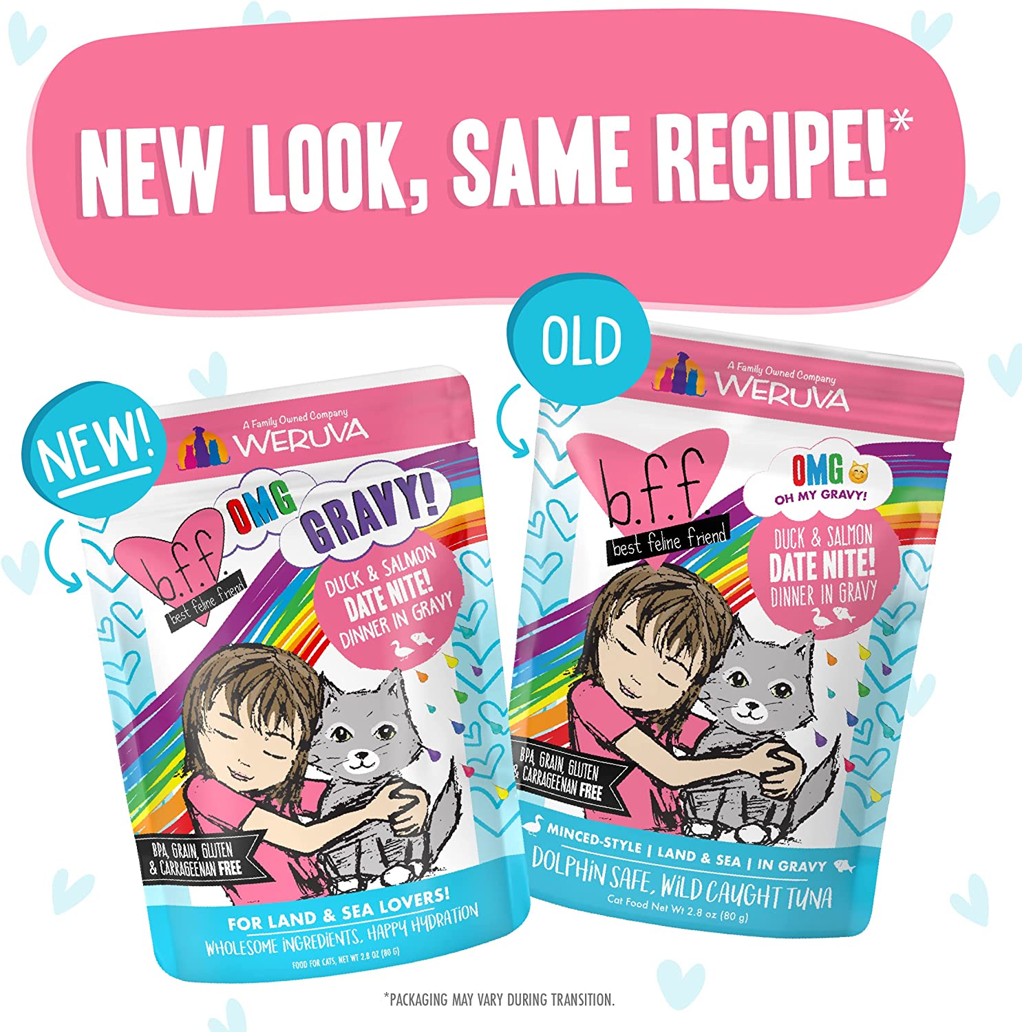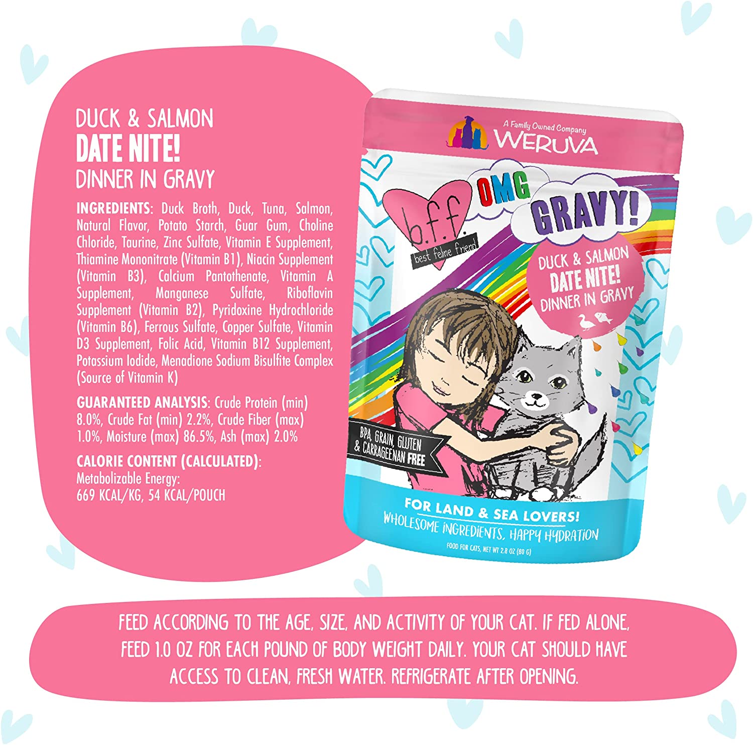 Weruva B.F.F. Omg - Best Feline Friend Oh My Gravy!. Date Nite! With Duck & Salmon In Gravy Cat Food. 2.8Oz Pouch (Pack Of 12)