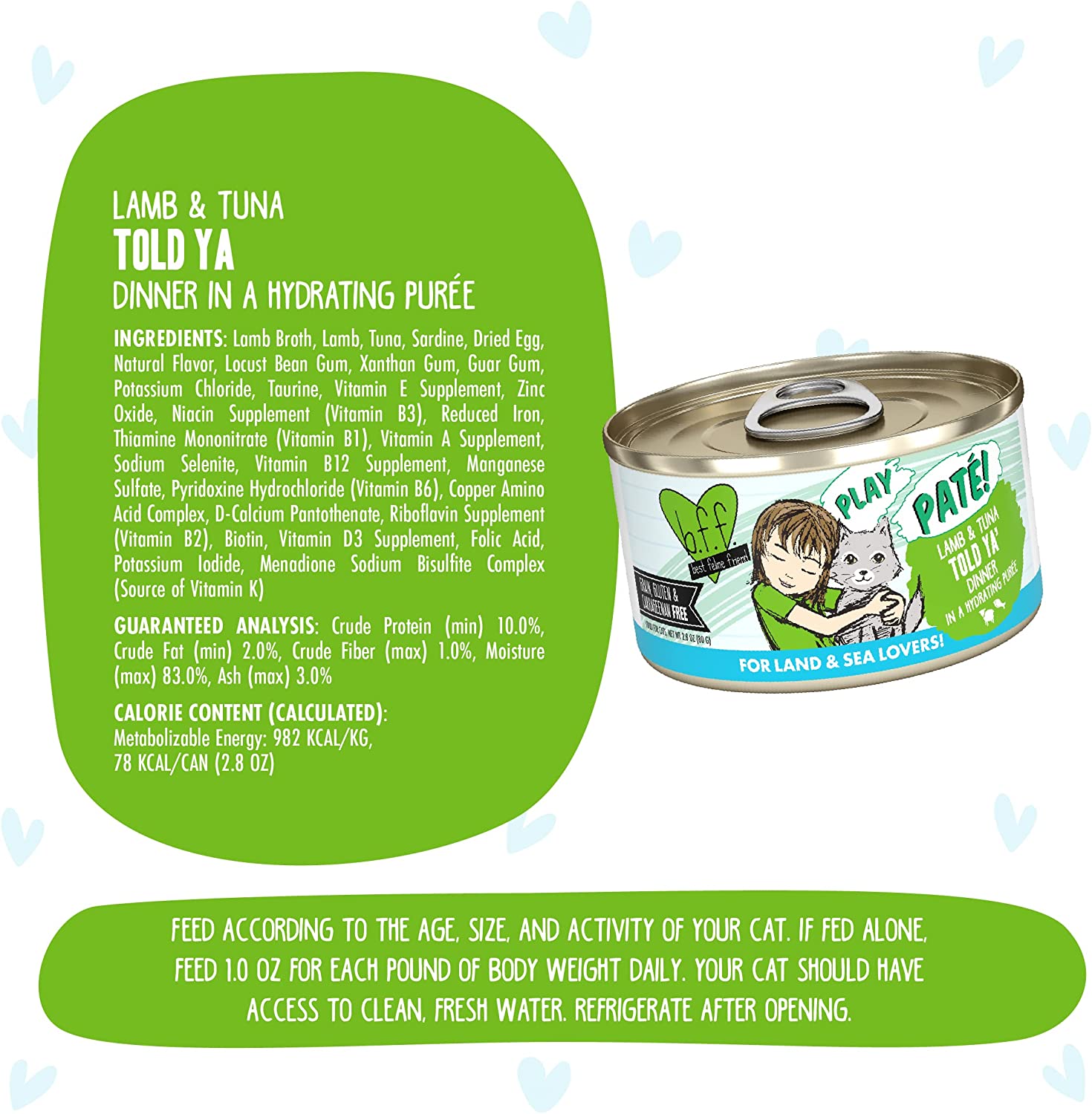 Weruva Wet Cat Food B.F.F. Play - Best Feline Friend Paté Lovers. Aw Yeah!. Lamb & Tuna Told Ya- with Lamb & Tuna. 2.8oz Can (Pack of 12)