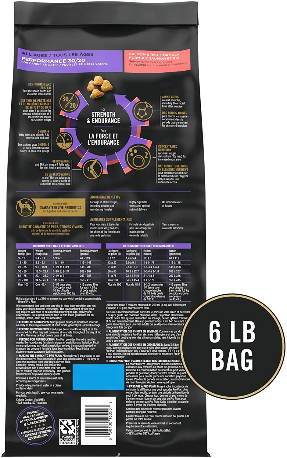 Purina Pro Plan High Energy. High Protein Dry Dog Food. SPORT 30/20 Salmon & Rice Formula - 6 lb. Bag