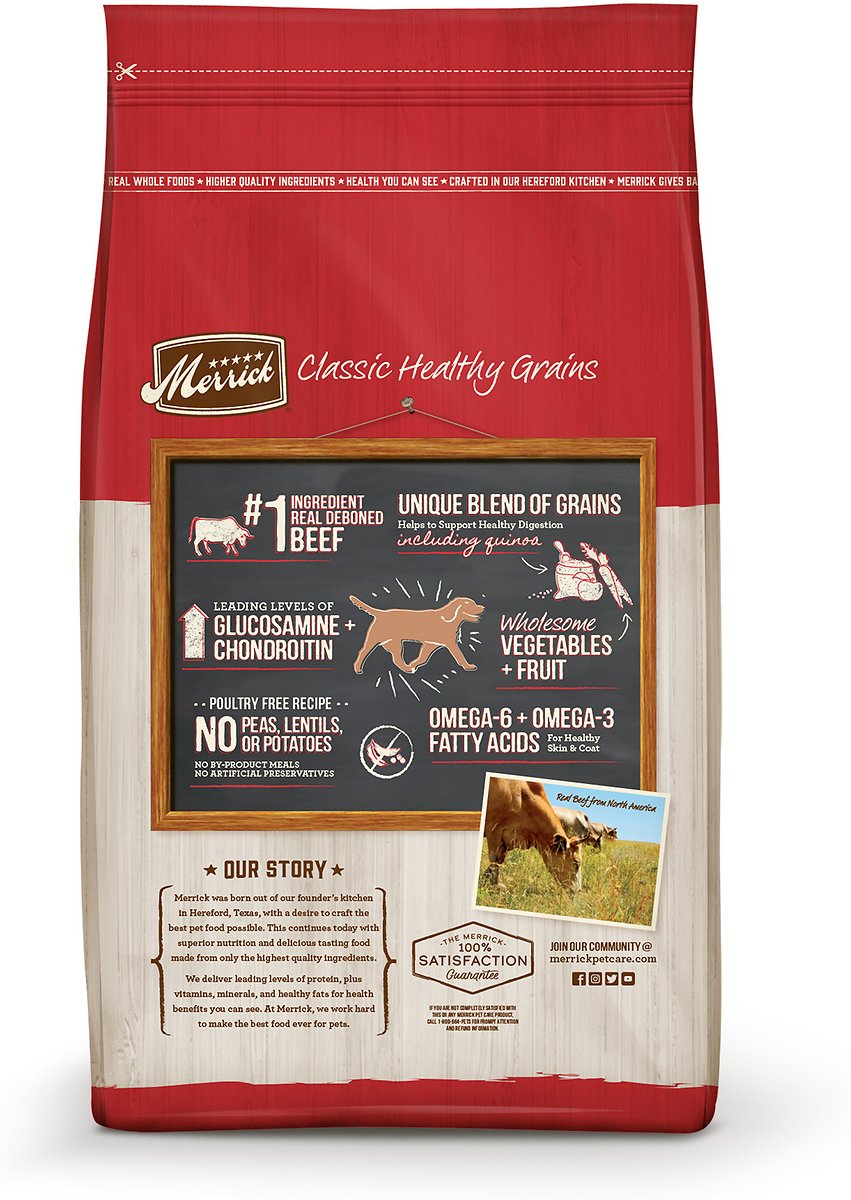 Merrick Classic Healthy Grains Real Beef + Brown Rice Recipe with Ancient Grains Adult Dry Dog Food. 25 lb Bag