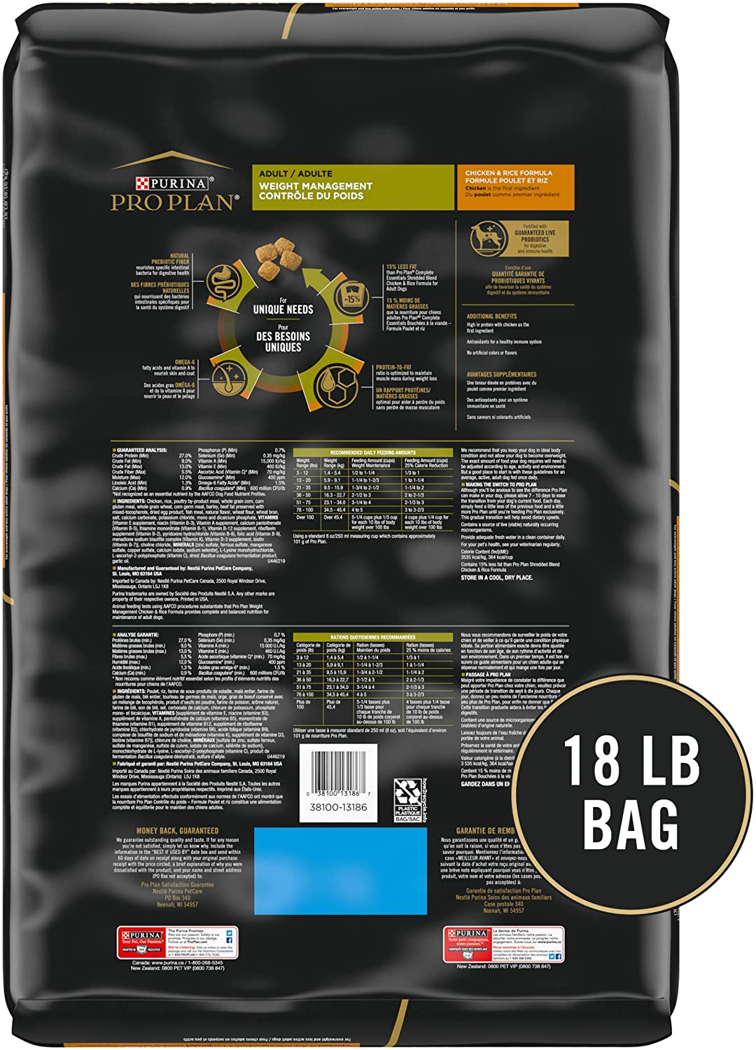 Purina Pro Plan Large Breed Weight Management Dry Dog Food. Chicken and Rice Formula - 34 lb. Bag