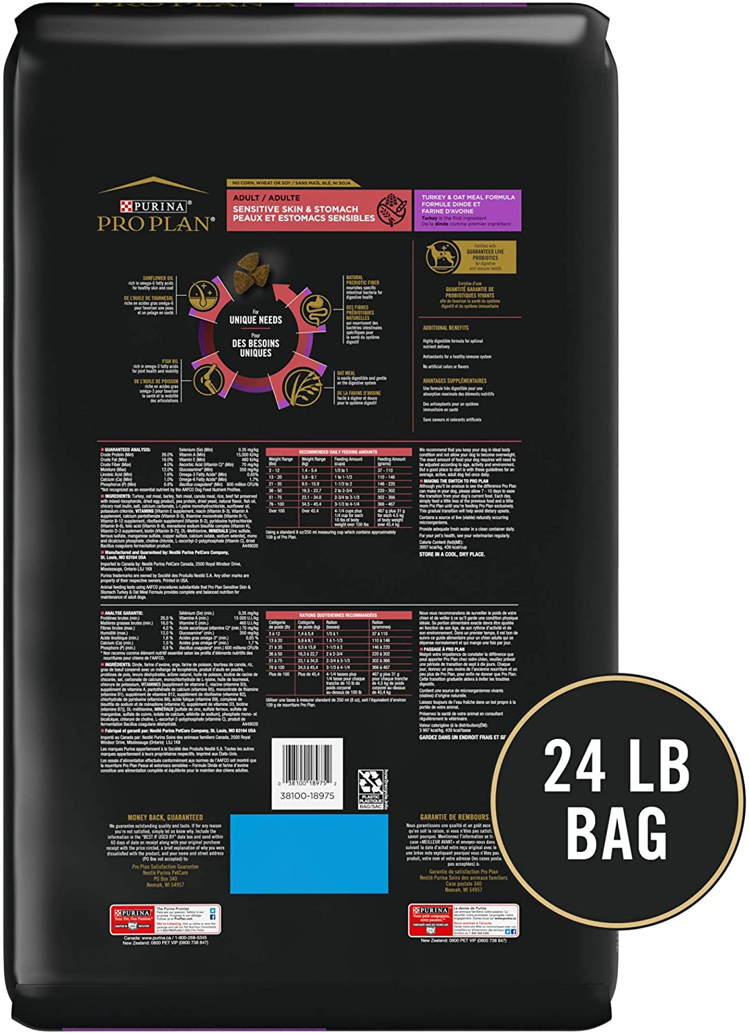 Purina Pro Plan Sensitive Skin and Stomach Dry Dog Food with Probiotics for Dogs. Turkey and Oat Meal Formula - 24 lb. Bag