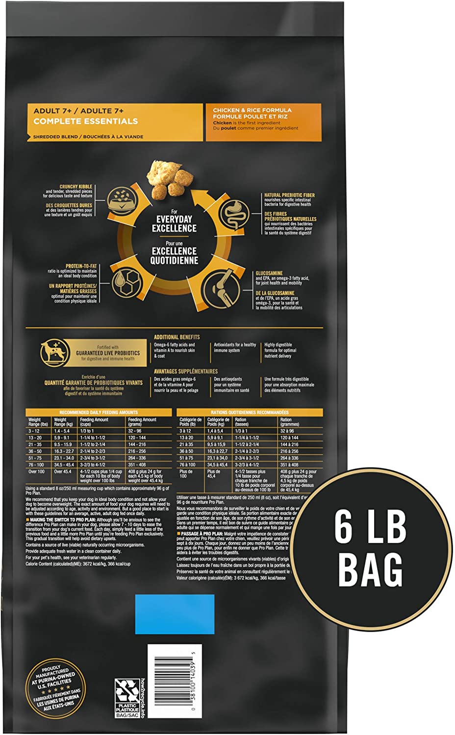 Purina Pro Plan Senior Dry Dog Food With Probiotics for Dogs. Shredded Blend Chicken and Rice Formula - 6 lb. Bag