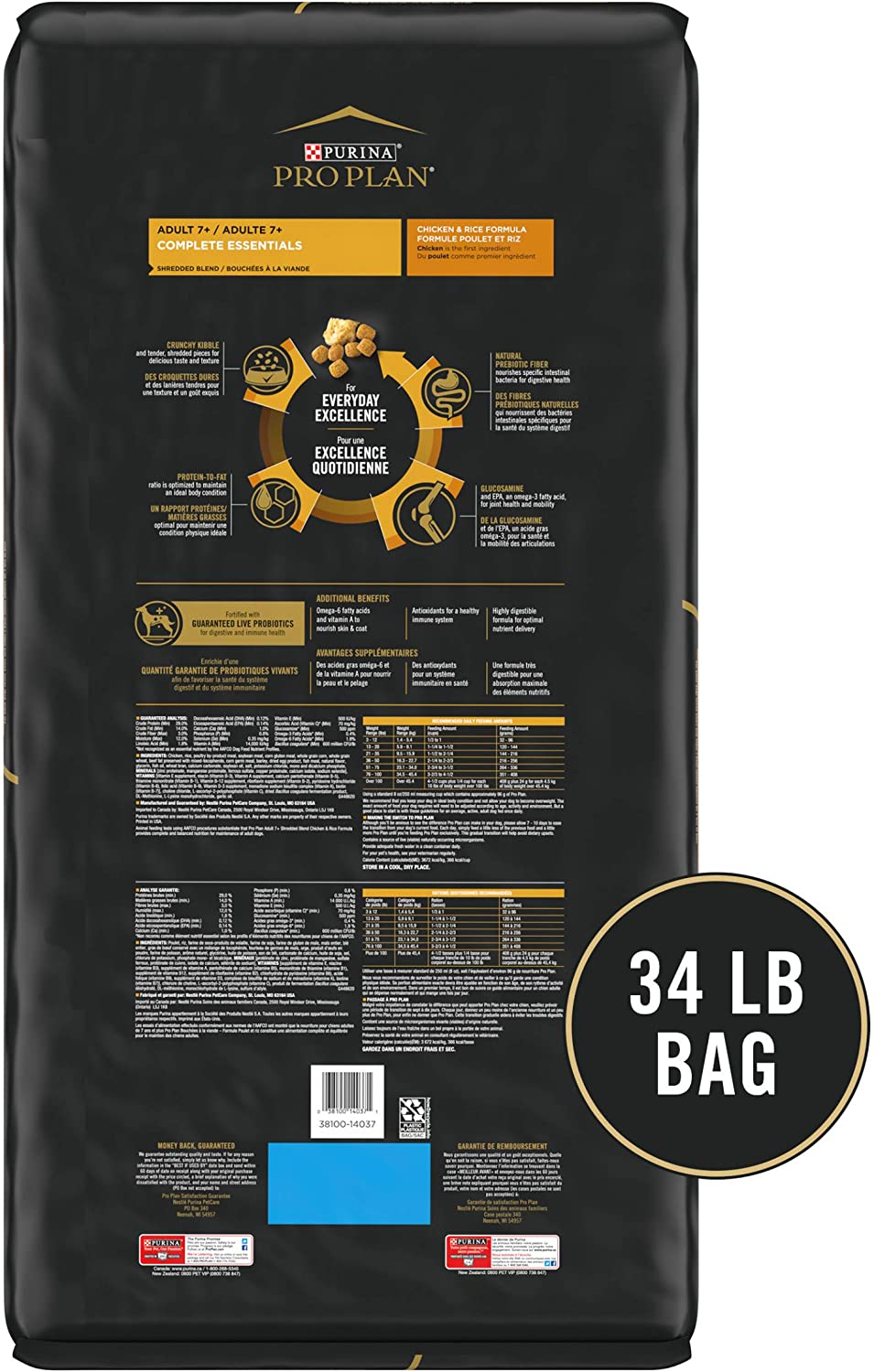 Purina Pro Plan Senior Dry Dog Food With Probiotics for Dogs. Shredded Blend Chicken and Rice Formula - 34 lb. Bag