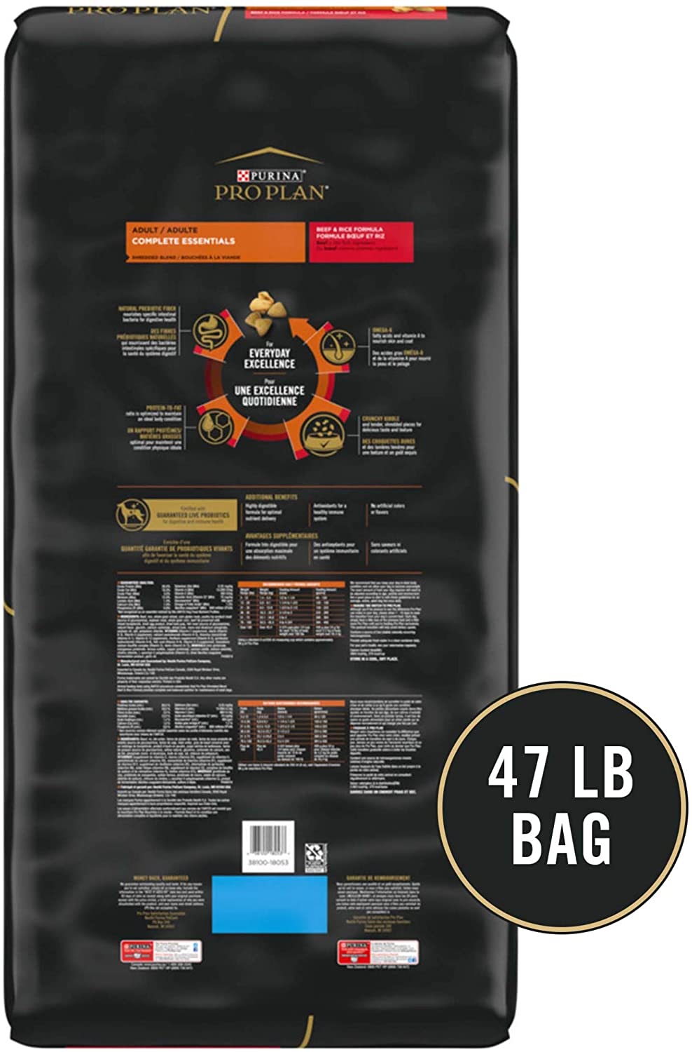 Purina Pro Plan High Protein Dry Dog Food With Probiotics for Dogs. Shredded Blend Beef and Rice Formula - 47 lb. Bag