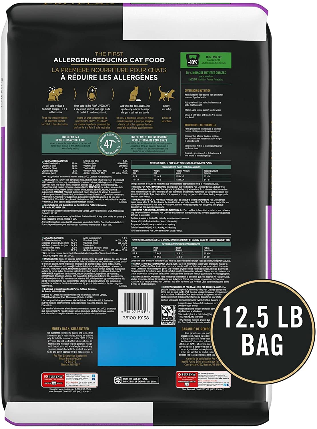 Purina Pro Plan LiveClear with Probiotics Allergen Reducing Indoor Turkey and Rice Adult Dry Cat Food 12.5 lb. Bag