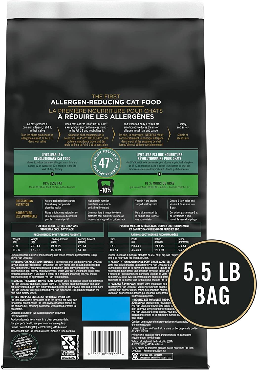 Purina Pro Plan LiveClear with Probiotics Allergen Reducing Indoor Turkey and Rice Adult Dry Cat Food 5.5 lb. Bag
