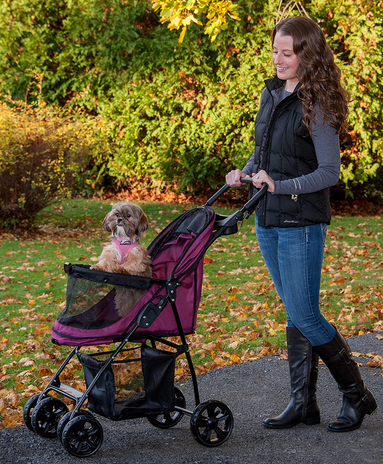 Pet Gear Happy Trails Lite No-Zip Pet Stroller. Zipperless Entry. Easy Fold with Removable Liner. Storage Basket + Cup Holder. Boysenberry