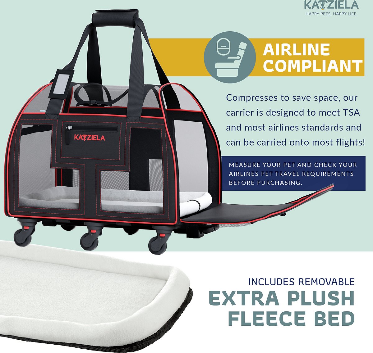 Katziela Rolling Pet Carrier Airline Approved - Pet Carrier with Wheels - Luxury Lorry - Deluxe TSA Approved Cat Carrier with Wheels - Small Airline Approved Dog Carrier Trolley - Plane Carry On Bag