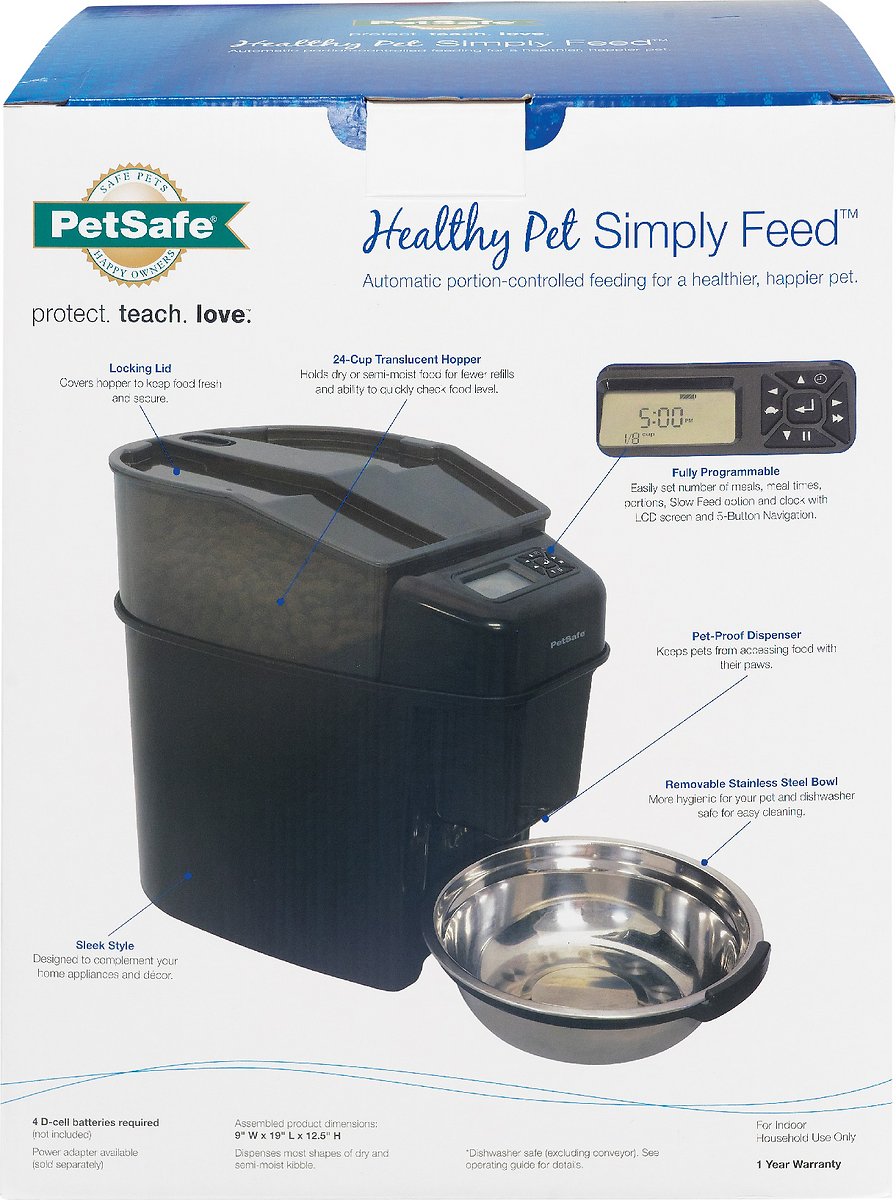 PetSafe Healthy Pet Simply Feed Automatic Cat Feeder for Cats and Dogs - 24 Cups Capacity Pet Food Dispenser with Slow Feed and Portion Control (12 Meals per Day)
