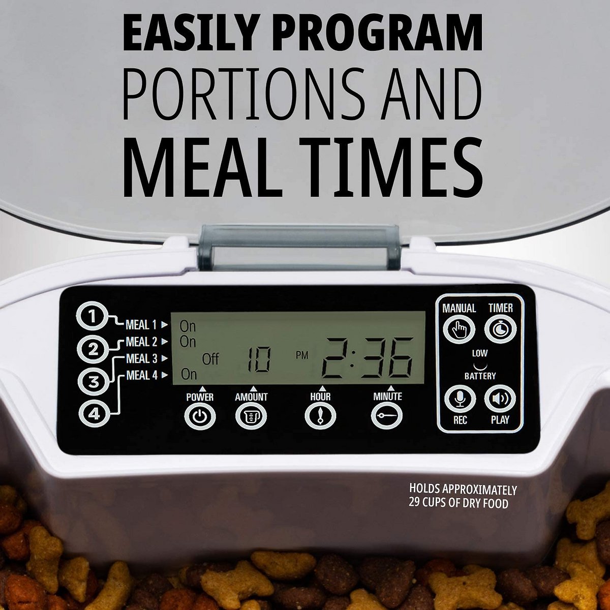 Arf Pets Automatic Pet Feeder Food Dispenser for Dogs. Cats & Small Animals – Features Distribution Alarms. Portion Control & Voice Recording – Timer Programmable Up to 4 Meals a Day