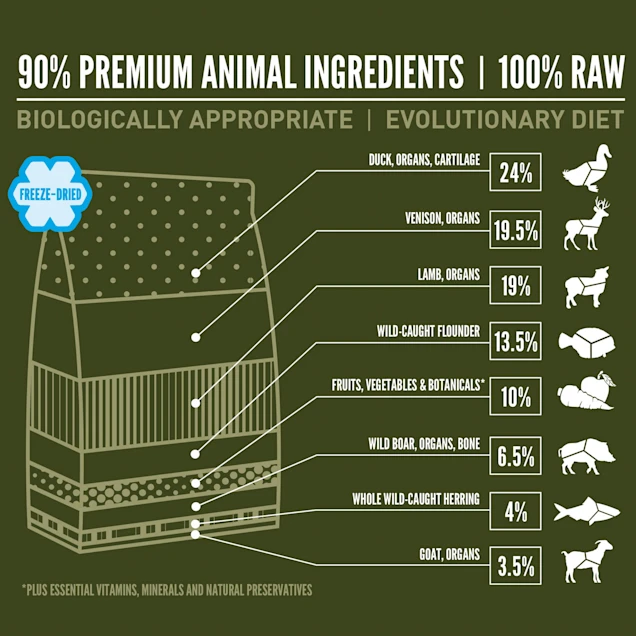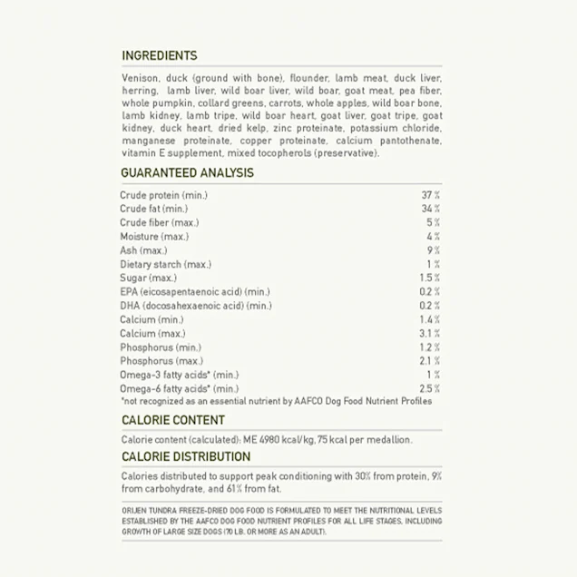 ORIJEN Tundra Recipe Grain Free High Protein Premium Raw Meat Freeze Dried Dog Food. 16 oz.